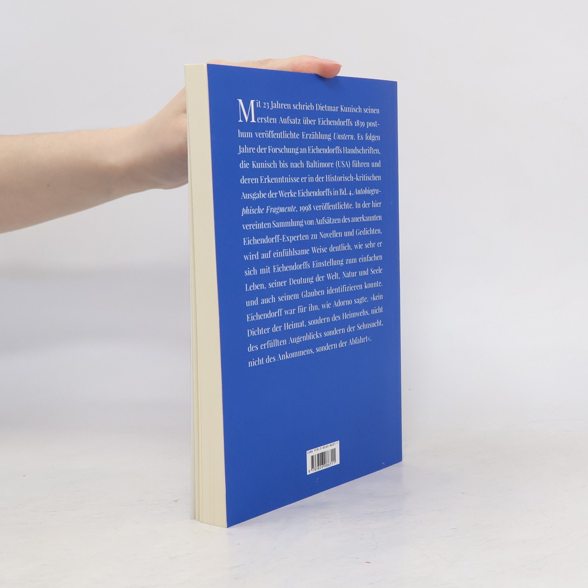 Die Sammlung von Aufsätzen des Eichendorff-Experten Dietmar Kunisch beleuchtet dessen tiefgehende Auseinandersetzung mit der Weltanschauung des Dichters. Kunisch, der bereits mit 23 Jahren seine Forschung über Eichendorffs posthum veröffentlichte Erzählung begann, reflektiert in seinen Arbeiten über Themen wie das einfache Leben, die Natur und die Seele. Er identifiziert sich mit Eichendorffs Glauben und dessen Sehnsucht, die in Adornos Worten als „Heimweh“ beschrieben wird. Diese Texte bieten wertvolle Einblicke in die komplexe Beziehung zwischen Eichendorff und seinen Themen.