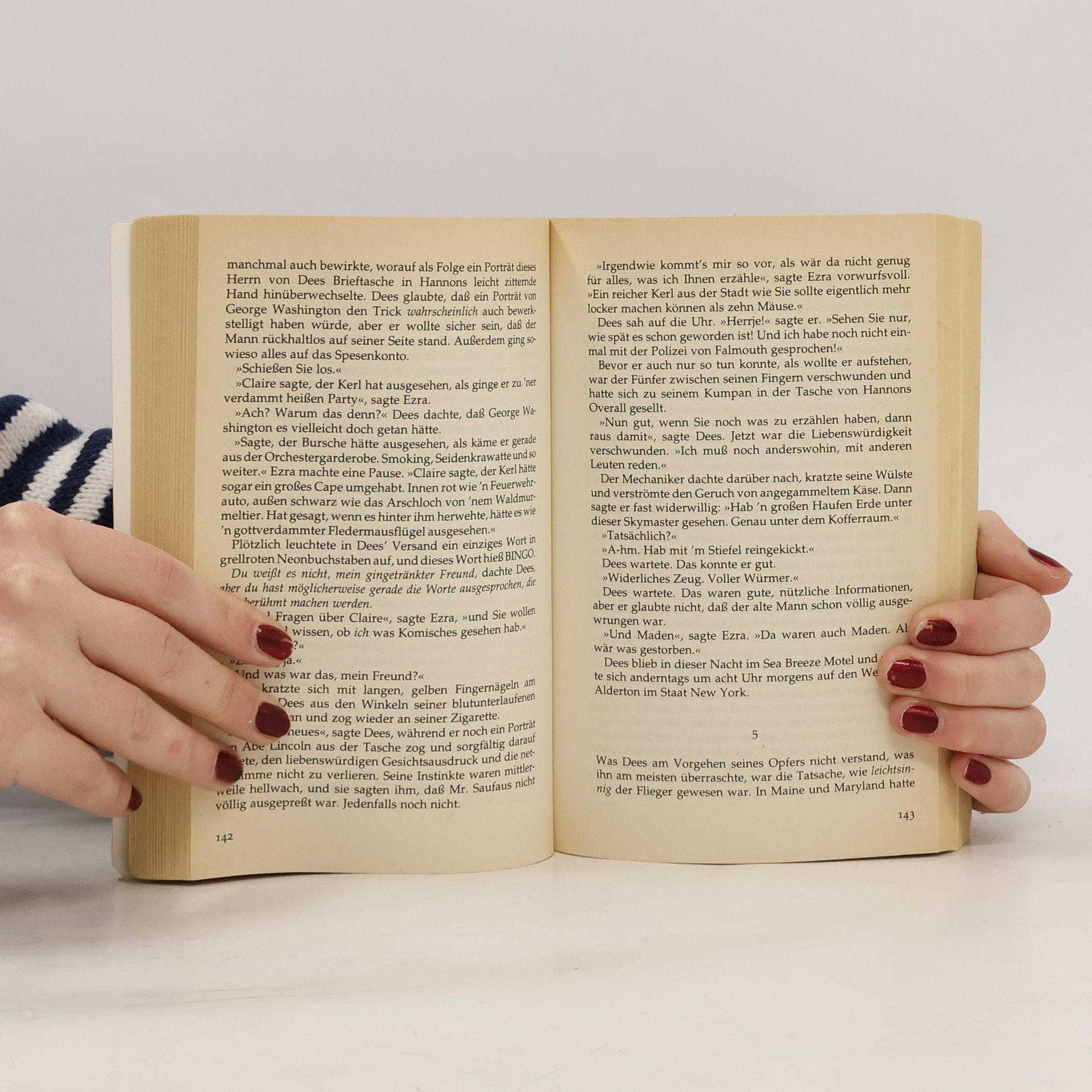 Inhalt:Dolans Cadillac (Dolan's Cadillac)Das Ende des ganzen Schlamassels (The End of the Whole Mess)Kinderschreck (Suffer The Little Children)Der Nachtflieger (The Night Flier)Popsy (Popsy)Es wächst einem über den Kopf (It Grows On You)Klapperzähne (Chattery Teeth)Zueignung (Dedication)Der rasende Finger (The Moving Finger)Turnschuhe (Sneakers)Verdammt gute Band haben die hier (You Know They Got a Hell of a Band)Hausentbindung (Home Delivery)