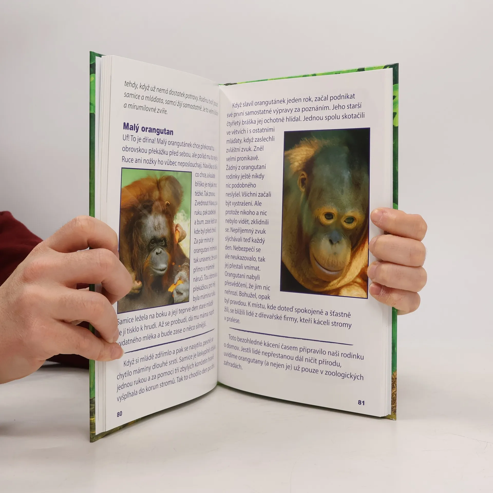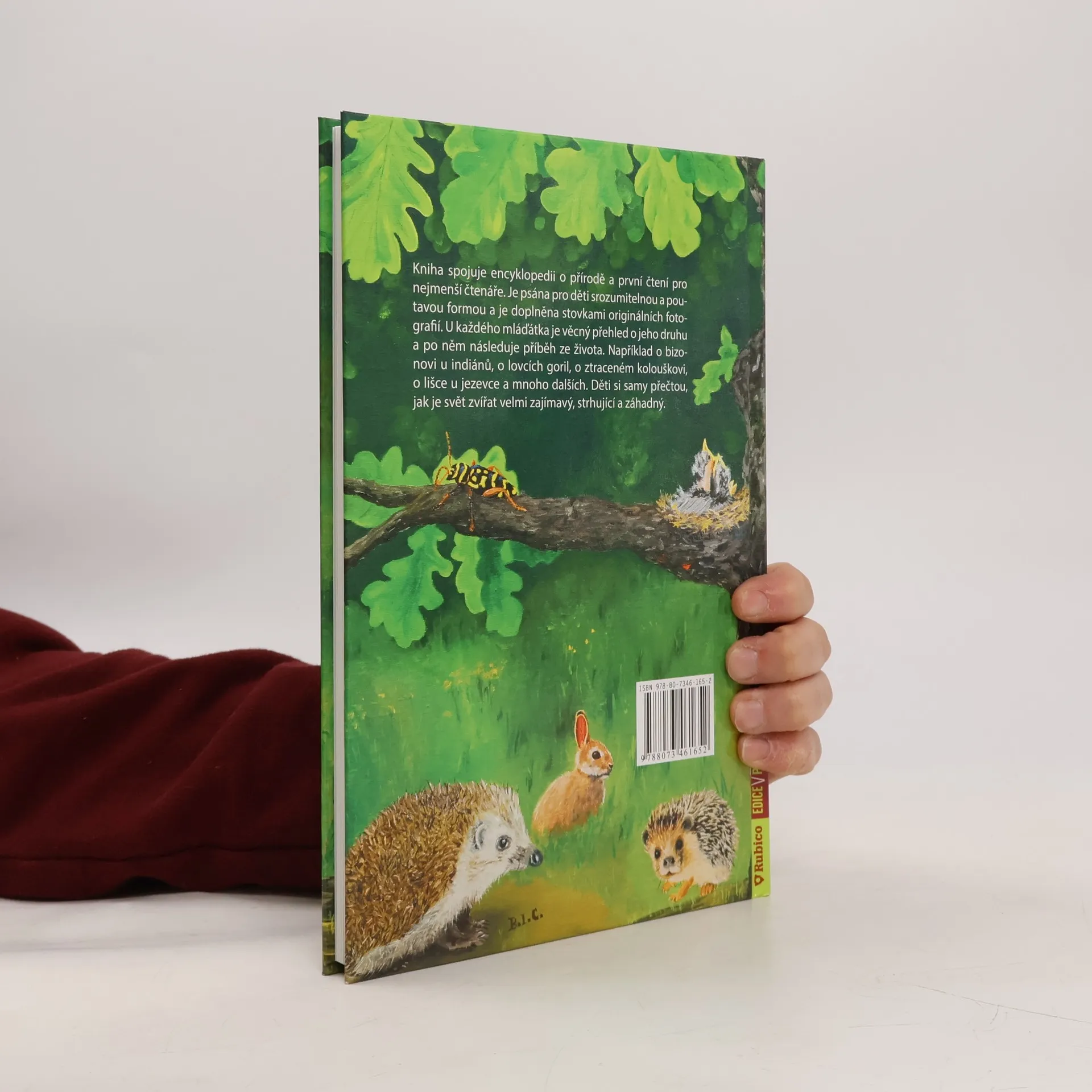 Kniha spojuje encyklopedii o přírodě a první čtení pro nejmenší čtenáře. Je psána pro děti srozumitelnou a poutavou formou a je doplněna stovkami originálních fotografií. U každého mláďátka je věcný přehled o jeho druhu a po něm následuje příběh ze života. Například o bizonovi u indiánů, o lovcích goril, o ztraceném kolouškovi, o lišce u jezevce a mnoho dalších. Děti si samy přečtou, jak je svět zvířat velmi zajímavý, strhující a záhadný.