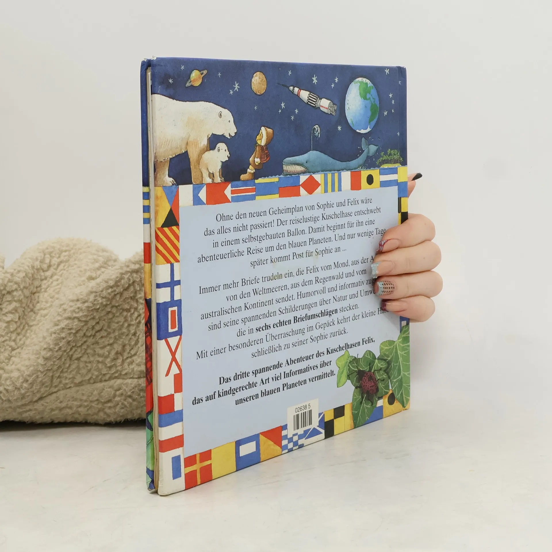 Ohne den Geheimplan von Sophie und Felix wäre das alles nicht passiert! Der reiselustige Kuschelhase entschwebt in einem selbst gebauten Ballon. Damit beginnt für ihn eine abenteuerliche Reise um den blauen Planeten. Und nur wenige Tage später kommt Post für Sophie an... Immer mehr Briefe trudeln ein, die Felix vom Mond, aus der Arktis, von den Weltmeeren, aus dem Regenwald und vom australischen Kontinent sendet. Humorvoll und informativ zugleich sind seine spannenden Schilderungen über Natur und Umwelt, die in sechs echten Briefumschlägen stecken. Das dritte spannende Abenteuer des Kuschelhasen Felix, das auf kindgerechte Art viel Informatives über unseren blauen Planeten vermittelt.