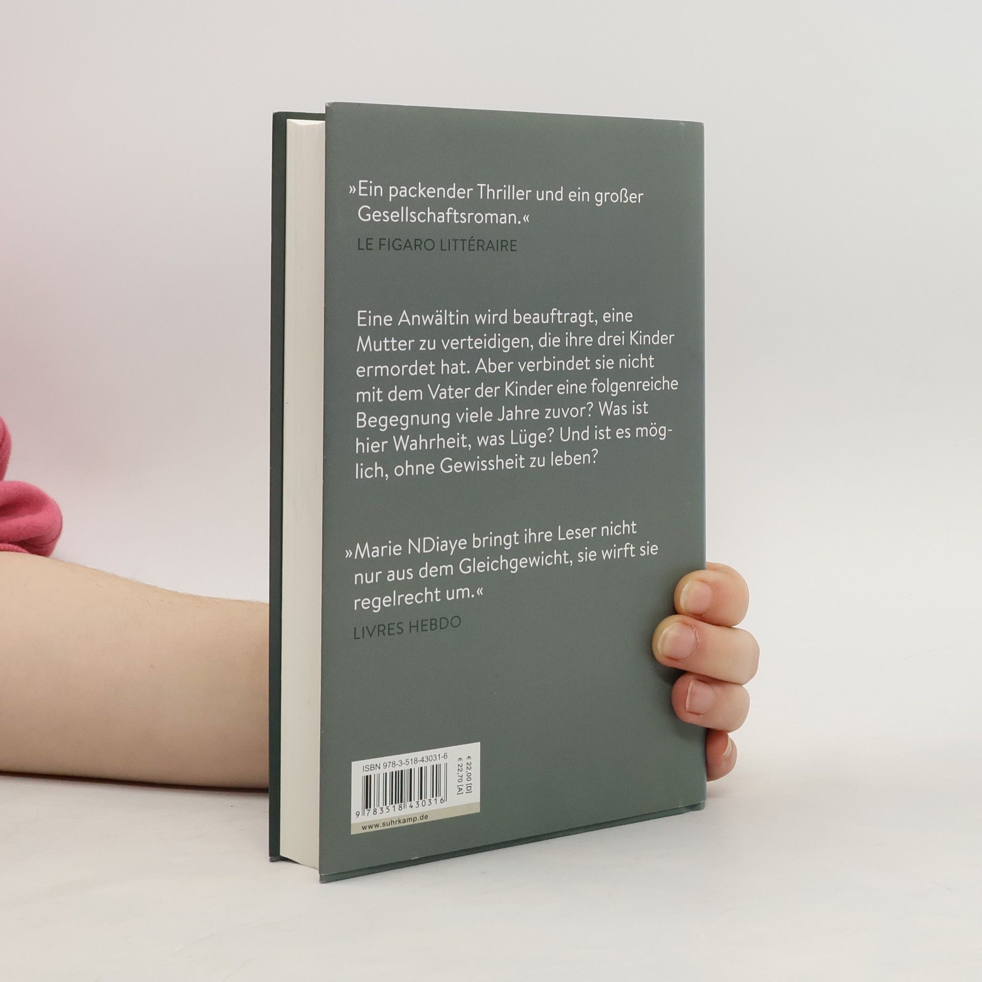 Maître Susane, 42, Anwältin in Bordeaux, wird von Gilles Principaux besucht, einem Mann, den sie aus ihrer Jugend zu kennen glaubt. Damals traf sie einen beeindruckenden Jungen aus reichem Elternhaus, der ihr Leben veränderte, doch die genauen Umstände sind vage. Hinweise ihres Vaters, dass der Junge ihr zu nahe gekommen sein könnte, weist sie empört zurück. Principaux bittet sie, die Verteidigung seiner Frau zu übernehmen, die ihre drei Kinder ermordet hat. Maître Susane nimmt den Fall an und gerät in einen Strudel aus Fragen und Zweifeln. Was ist mit der Mutter geschehen? Welche Rolle spielen ihre maurizischen Hausangestellten und deren Kinder? Wer ist Gilles Principaux wirklich? Und ist sie selbst die Person, die sie zu sein glaubt? Die Anwältin wird mit der dunklen Vergangenheit konfrontiert und muss zwischen Wahrheit und Lüge unterscheiden. Marie NDiayes aufwühlender Roman über eine Frau in einer Extremsituation ist ein literarisches Ereignis, das mit den Erwartungen und Ängsten der Leser spielt. Die Kritiken loben das Werk als packenden Thriller und bedeutenden Gesellschaftsroman, der die Widersprüche im Leben von Frauen thematisiert und die gesellschaftlichen Strömungen in Frankreich einfängt.