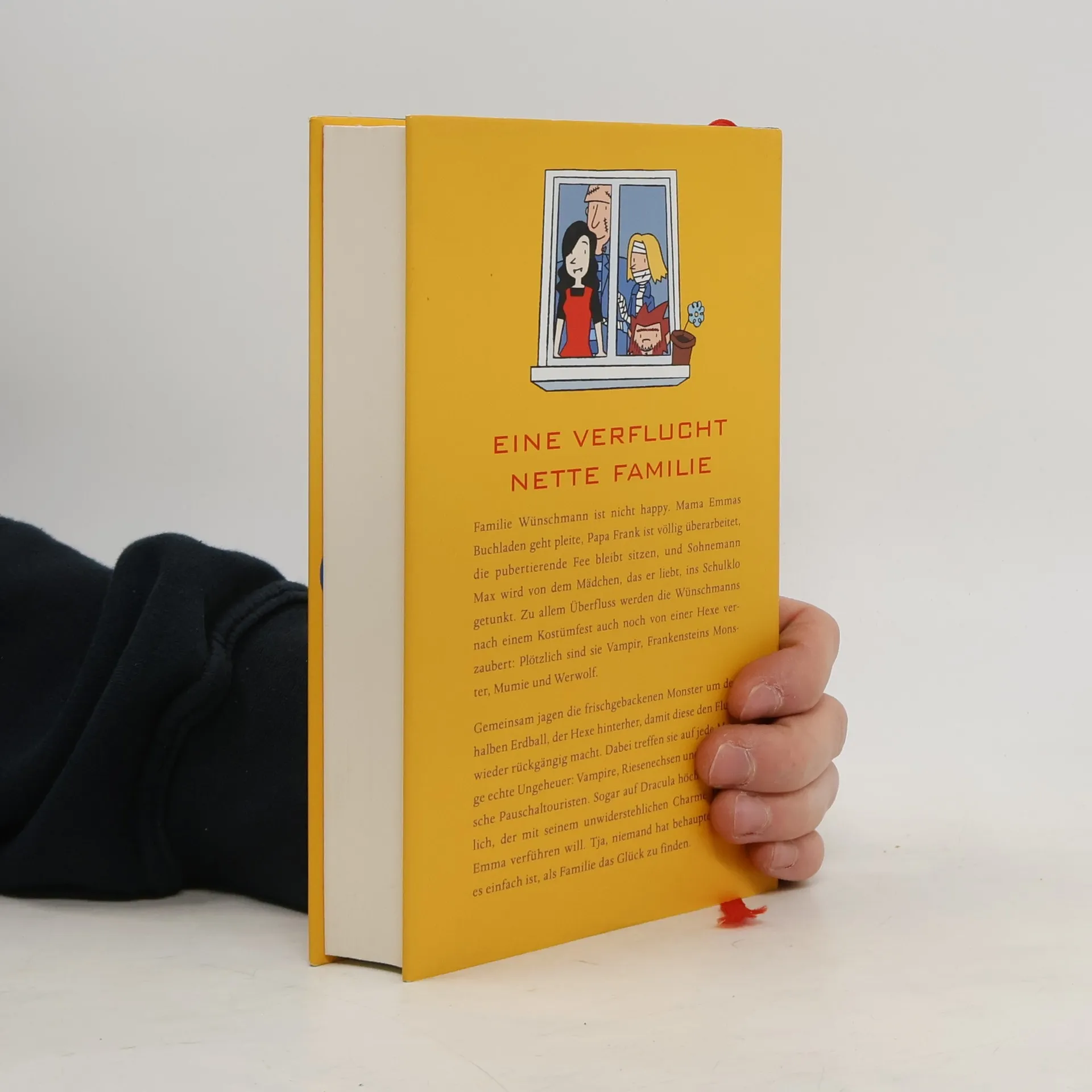 Eine verflucht nette FamilieFamilie Wünschmann ist nicht happy. Mama Emmas Buchladen geht pleite, Papa Frank ist völlig überarbeitet, die pubertierende Fee bleibt sitzen, und Sohnemann Max wird von dem Mädchen, das er liebt, ins Schulklo getunkt. Zu allem Überfluss werden die Wünschmanns nach einem Kostümfest auch noch von einer Hexe verzaubert: Plötzlich sind sie Vampir, Frankensteins Monster, Mumie und Werwolf.Gemeinsam jagen die frischgebackenen Monster um den halben Erdball, der Hexe hinterher, damit diese den Fluch wieder rückgängig macht. Dabei treffen sie auf jede Menge echte Ungeheuer: Vampire, Riesenechsen und schwäbische Pauschaltouristen. Sogar auf Dracula höchstpersönlich, der mit seinem unwiderstehlichen Charme Mama Emma verführen will. Tja, niemand hat behauptet, dass es einfach ist, als Familie das Glück zu finden.