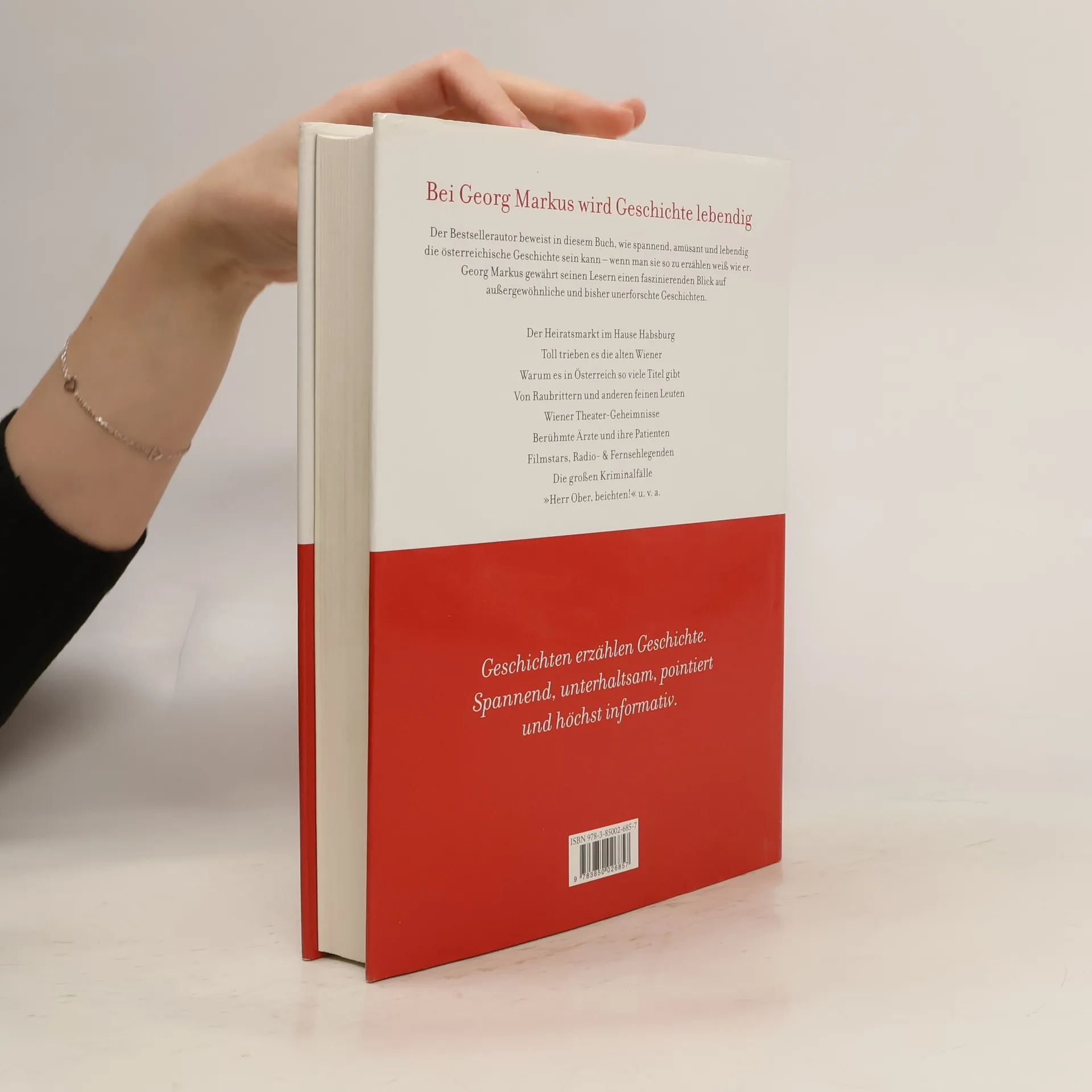 In seinem neuen Buch erzählt Georg Markus die österreichische Geschichte auf spannende und unterhaltsame Weise. Er beleuchtet das Leben der Menschen in früheren Zeiten, von Aristokraten und „kleinen Leuten“ bis hin zu Ärzten und großen Komponisten, sowie Dichtern, Malern und Schauspielern. Auch das Leben der Monarchen wird thematisiert, deren strenges Hofzeremoniell spontane Besuche bei ihren Gemahlinnen unmöglich machte. So findet man Habsburger im Kapitel „Toll trieben es die alten Wiener“, das heimliche Liebschaften und Affären beleuchtet. Überraschend taucht der Name Grillparzer nicht nur bei den Literaten auf, sondern auch im Abschnitt „Große Kriminalfälle“, da Markus entdeckte, dass der Bruder des Dichters mehrfach mit dem Gesetz in Konflikt geriet. Die Reise beginnt beim ersten Babenberger, der einem Mordanschlag zum Opfer fiel, und führt bis zur Ablösung der Pferdetramway durch die Elektrische. Markus untersucht die Vielzahl an Orden und Ehrentiteln in Österreich und schildert die Entwicklung des österreichischen Films sowie die Schicksale seiner Legenden wie Hedy Lamarr und Romy Schneider. Kapitel wie „Österreich wird narrisch“ und „Nie wieder Fernsehen“ beleuchten Radiolieblinge und Bildschirmpioniere. Georg Markus gelingt es, wichtige Stationen der österreichischen Geschichte und ihrer Protagonisten spannend und amüsant zu erzählen.