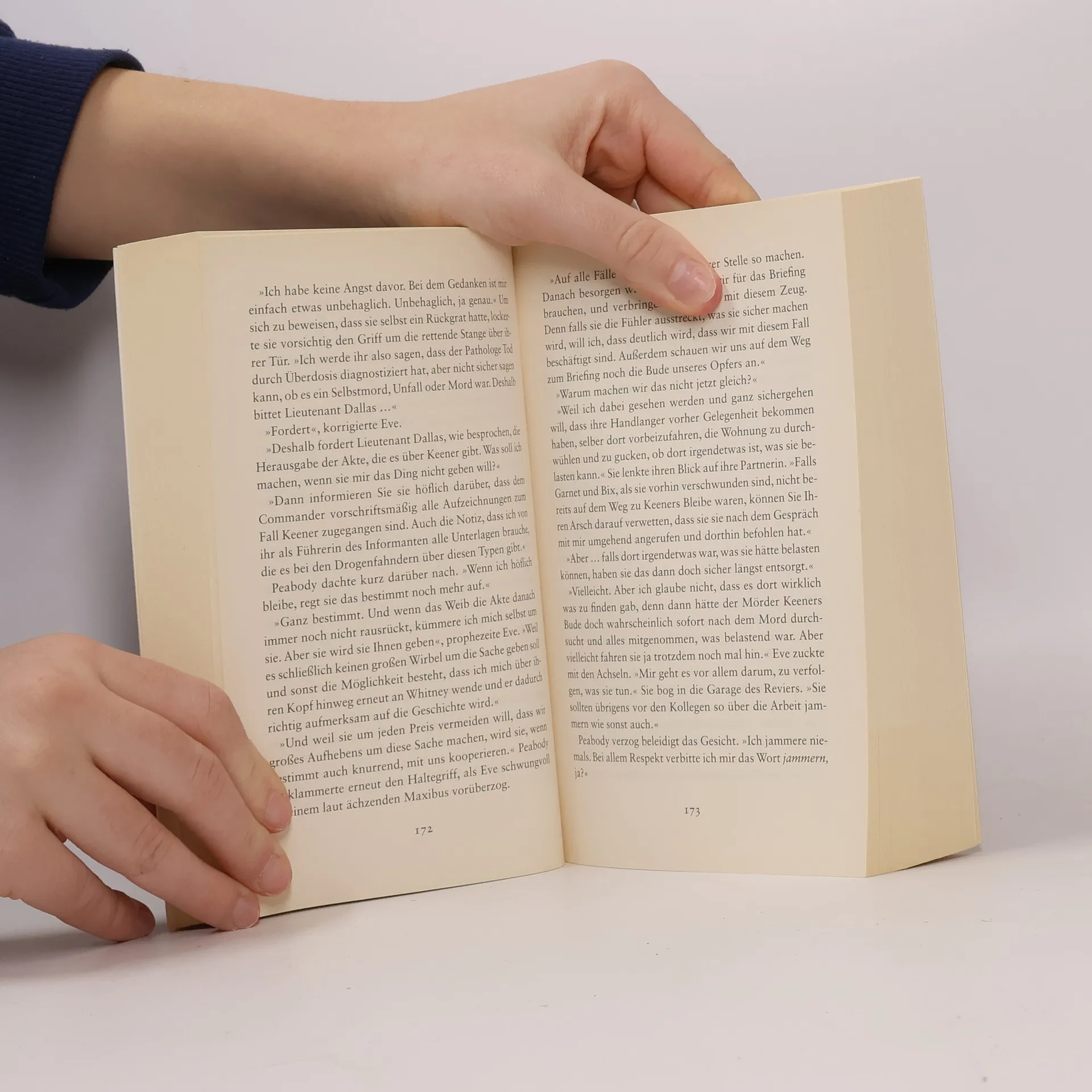 Fesselnd, leidenschaftlich, unglaublich cool! Eve Dallas und ihre Partnerin Peabody untersuchen ein scheinbar sinnloses Verbrechen: Ein Lebensmittelhändler wurde von drei drogensüchtigen jungen Männern ermordet – nur für den Kick? Es ist der erste Fall für Peabody, den sie leiten darf, und sie stolpert gleich in eine heikle Situation: Sie belauscht unfreiwillig ihre Kollegen Garnet und Oberman bei einer Unterhaltung, in der es eindeutig um Korruption geht. Eve und Peabody setzen alles daran, ausreichend Beweise zu finden, um das schmutzige Spiel der Cops zu enttarnen. Aber auch der eigentliche Fall bereitet den beiden zunehmend Kopfschmerzen …