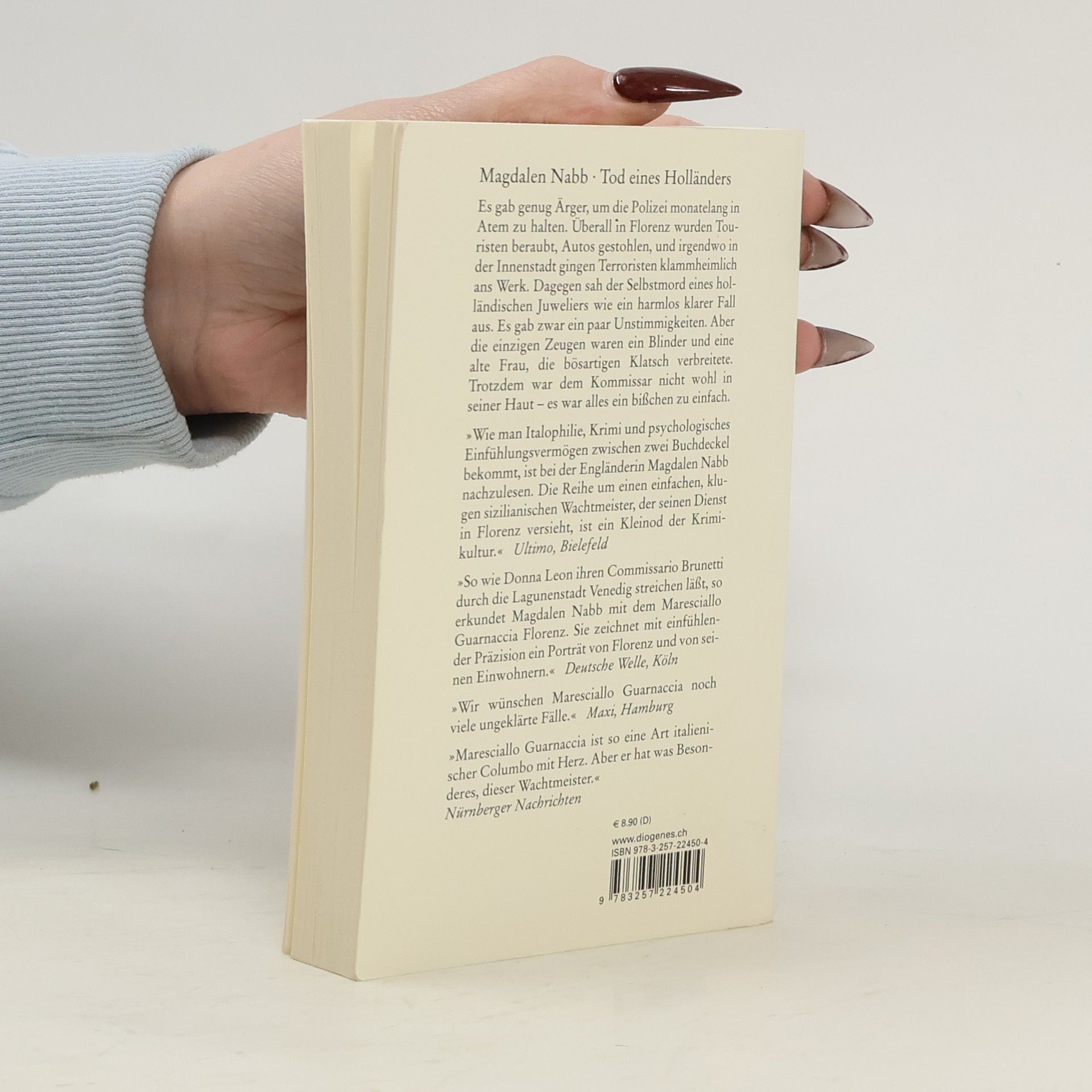 Überall in Florenz werden Touristen beraubt, Autos gestohlen, und in der Innenstadt gehen sogar Terroristen ans Werk. Dagegen sieht der Selbstmord eines holländischen Juweliers wie ein harmlos klarer Fall aus. Es gibt zwar ein paar Unstimmigkeiten, aber die einzigen Zeugen sind ein Blinder und eine alte Frau, die bösartigen Klatsch verbreitet. Trotzdem ist dem Maresciallo nicht wohl in seiner Haut – es wirkt alles ein bisschen zu einfach …