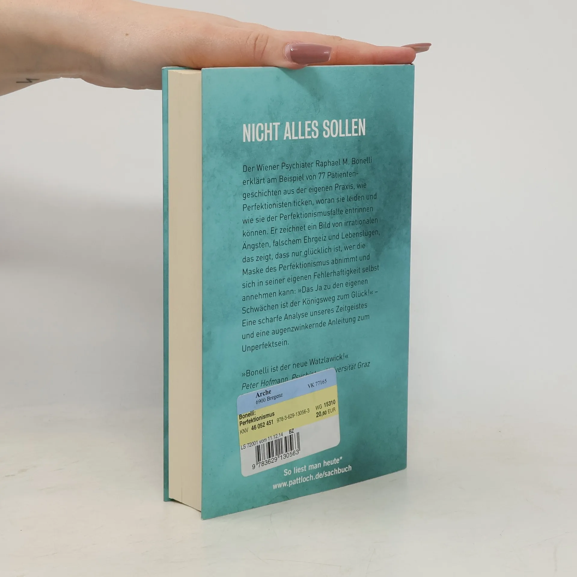 »Ob in der Erziehung, der Ehe oder im Job – immer wollen wir alles richtig machen. Und dabei auch noch gut aussehen. Doch oft scheitern wir an den eigenen Ansprüchen.« Raphael Bonelli schildert in über 50 teils tragikomischen, teils erschütternden Patientengeschichten aus der eigenen Praxis, wie Perfektionisten ticken. Der Wiener Psychiater zeichnet ein Bild heutiger Seelennöte, von Ängsten, falschem Ehrgeiz und Lebenslügen, um aufzuzeigen, dass glücklich ist, wer sich in seiner ganzen Fehlerhaftigkeit, Durchschnittlichkeit und Gewöhnlichkeit selbst annehmen kann.