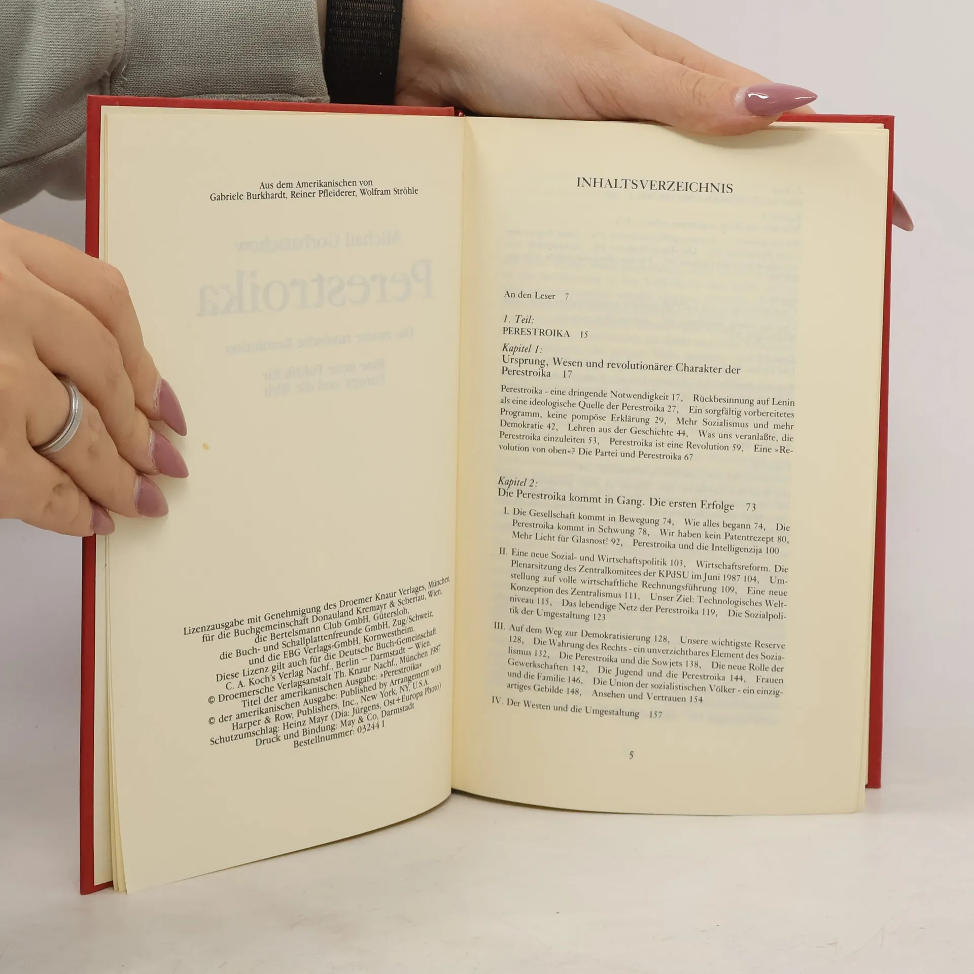 In diesem Buch - 1987 zustandegekommen u.a. auf Bitten eines amerikanischen Verlages - legt der (seit 1985 amtierende) Generalsekretär der KPdSU Wege und Ziele für eine radikale Umgestaltung der sowjetischen Gesellschaft sowie Konzepte einer neuen Politik für Europa und die Welt dar