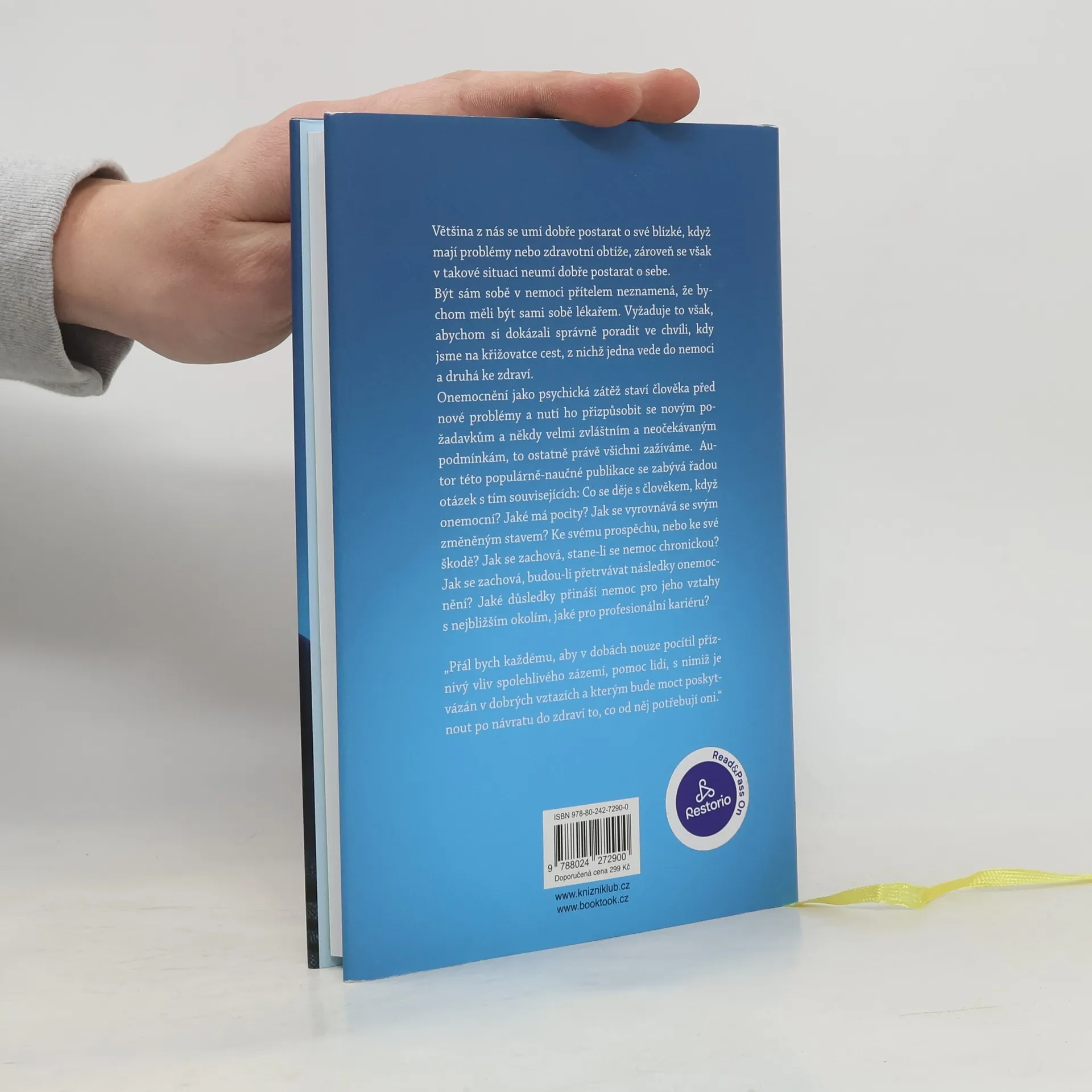 Většina z nás se umí dobře postarat o své blízké, když mají problémy nebo zdravotní obtíže, zároveň se však v takové situaci neumí dobře postarat o sebe. Být sám sobě v nemoci přítelem neznamená, že bychom měli být sami sobě lékařem. Vyžaduje to však, abychom si dokázali správně poradit ve chvíli, kdy jsme na křižovatce cest, z nichž jedna vede do nemoci a druhá ke zdraví. Onemocnění jako psychická zátěž staví člověka před nové problémy a nutí ho přizpůsobit se novým požadavkům a někdy velmi zvláštním a neočekávaným podmínkám, to ostatně právě všichni zažíváme. Autor této populárně naučné publikace se zabývá řadou otázek s tím souvisejících: Co se děje s člověkem, když onemocní? Jaké má pocity? Jak se vyrovnává se svým změněným stavem? Ke svému prospěchu, nebo ke své škodě? Jak se zachová, stane-li se nemoc chronickou? Jak se zachová, budou-li přetrvávat následky onemocnění? Jaké důsledky přináší nemoc pro jeho vztahy s nejbližším okolím, jaké pro profesionální kariéru? „Přál bych každému, aby v dobách nouze pocítil příznivý vliv spolehlivého zázemí, pomoc lidí, s nimiž je vázán v dobrých vztazích a kterým bude moct poskytnout po návratu do zdraví to, co od něj potřebují oni.“
