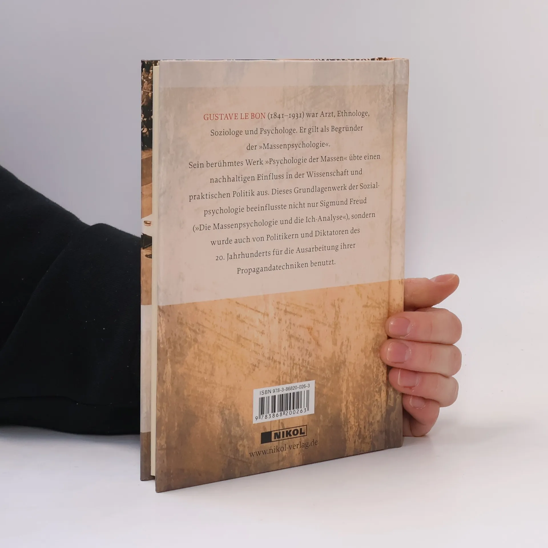 GUSTAVE LE BON (1841-1931) Arzt, Ethnologe, Soziologe und Psychologe. Er gilt als Begründer der 'Massenpsychologie'. Sein berühmtes Werk 'Psychologie der Massen' übte einen nachhaltigen Einfl uss in der Wissenschaft und praktischen Politik aus. Dieses Grundlagenwerk der Sozialpsychologie beeinfl usste nicht nur Siegmund Freud ('Die Massenpsychologie und die Ich-Analyse'), sondern wurde auch von Politikern und Diktatoren des 20. Jahrhunderts für die Ausarbeitung ihrer Propagandatechniken benutzt.