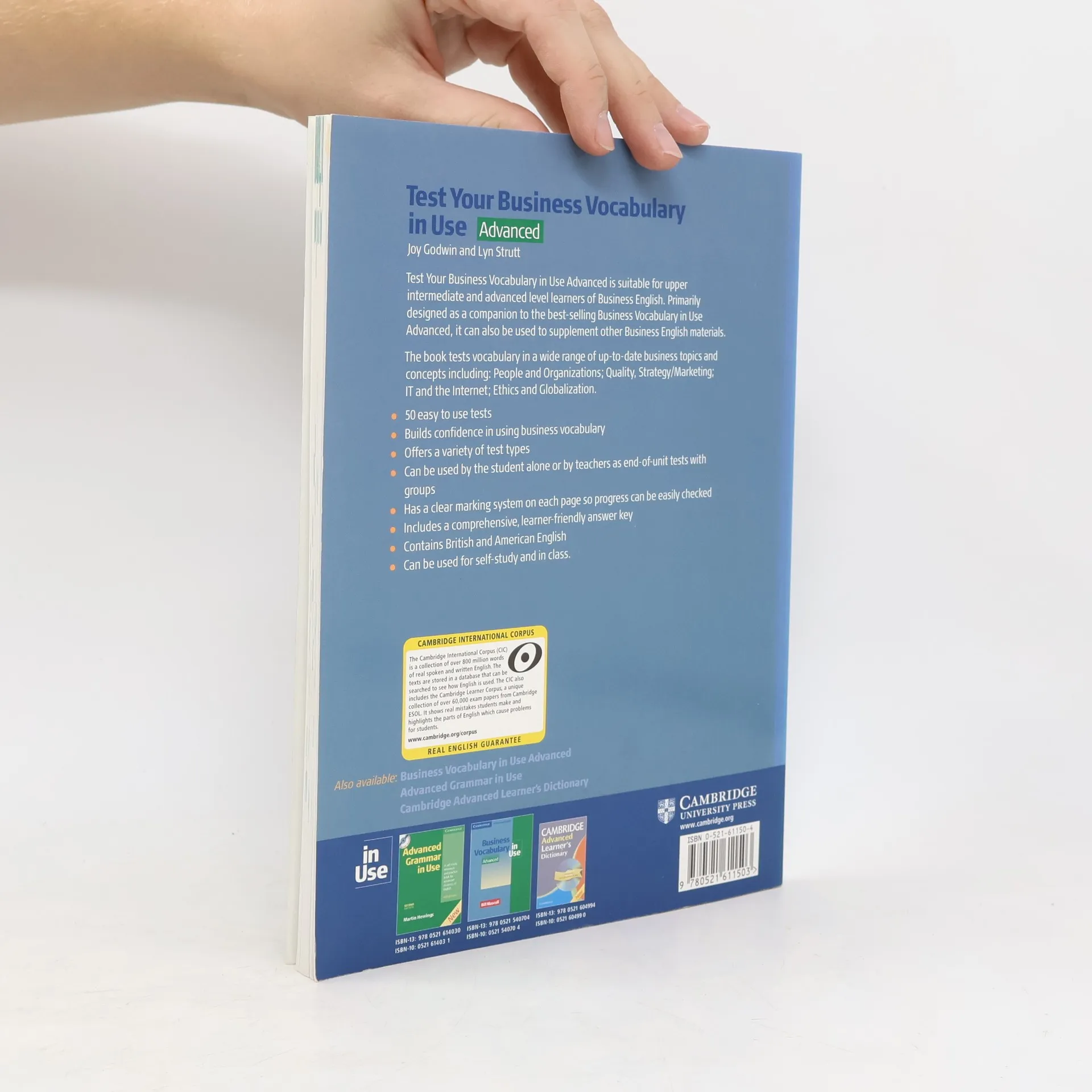 Test your Business Vocabulary in Use: Advanced is suitable for upper-intermediate and advanced learners of Business English. Primarily designed as a companion to Business Vocabulary in Use: Advanced, it can also be used to supplement other upper-intermediate and advanced Business English materials. The book covers a wide range of business topics with easy-to-use tests. It can be used by students studying alone, or by teachers, as end of unit tests, with groups or one-to-one.