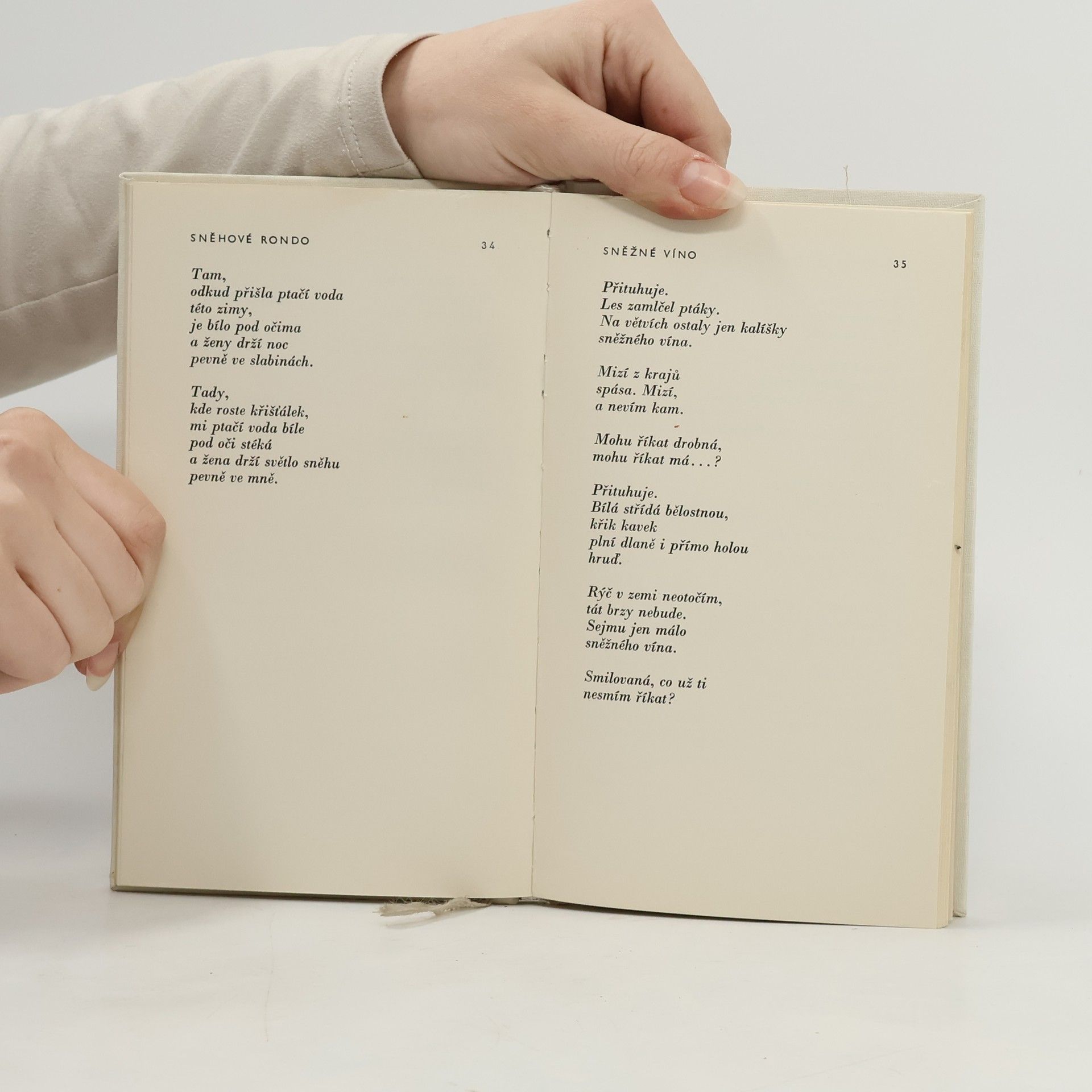 Sbírka lyrické poezie, která představuje krajinu v různých náladách a podobách – pustá podzimní pole, sněhové závěje či bílorůžové pahorky, kde „lišky dusí ozvěnu“.