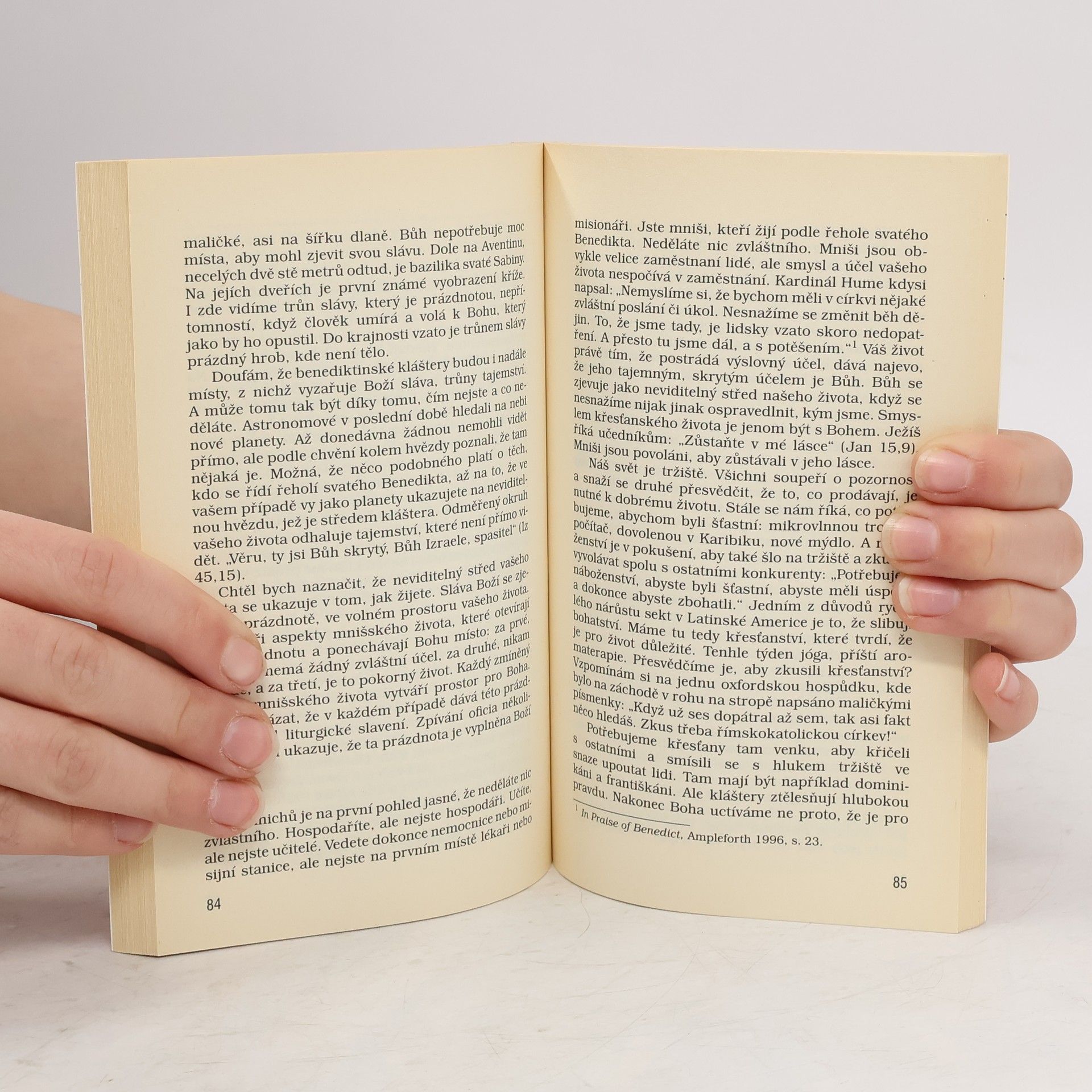 Každá kultura potřebuje příběhy, které jí pomáhají pochopit, odkud a kam jde, co je motorem a smyslem jejích dějin. Moderní dobu charakterizují příběhy plné násilí, v nichž je hybnou silou výběr nejsilnějších jedinců, cílem je bohatství, moc a blahobyt, hlavním hrdinou je osamocené, sebevědomé ego. Jeho symbolem je rozzuřený medvěd z italských pouličních reklam, který hlásá, že jde za svým soukromým cílem „silou správné ceny“. Alternativou k tomuto modernímu příběhu je obraz mnišky, která uprostřed noci v kruhu svých sester a bratří zpívá milostnou píseň velikonoční svíci. Je to píseň o tom, že čas se neměří hodinkami, ale poměřuje se věčností, že člověk není osamocen, že hybnou silou není soupeření, ale láska a že blahobyt představuje spíš překážku na cestě k cíli než cíl sám... Je to píseň o naději, že z temnoty vzejde světlo.