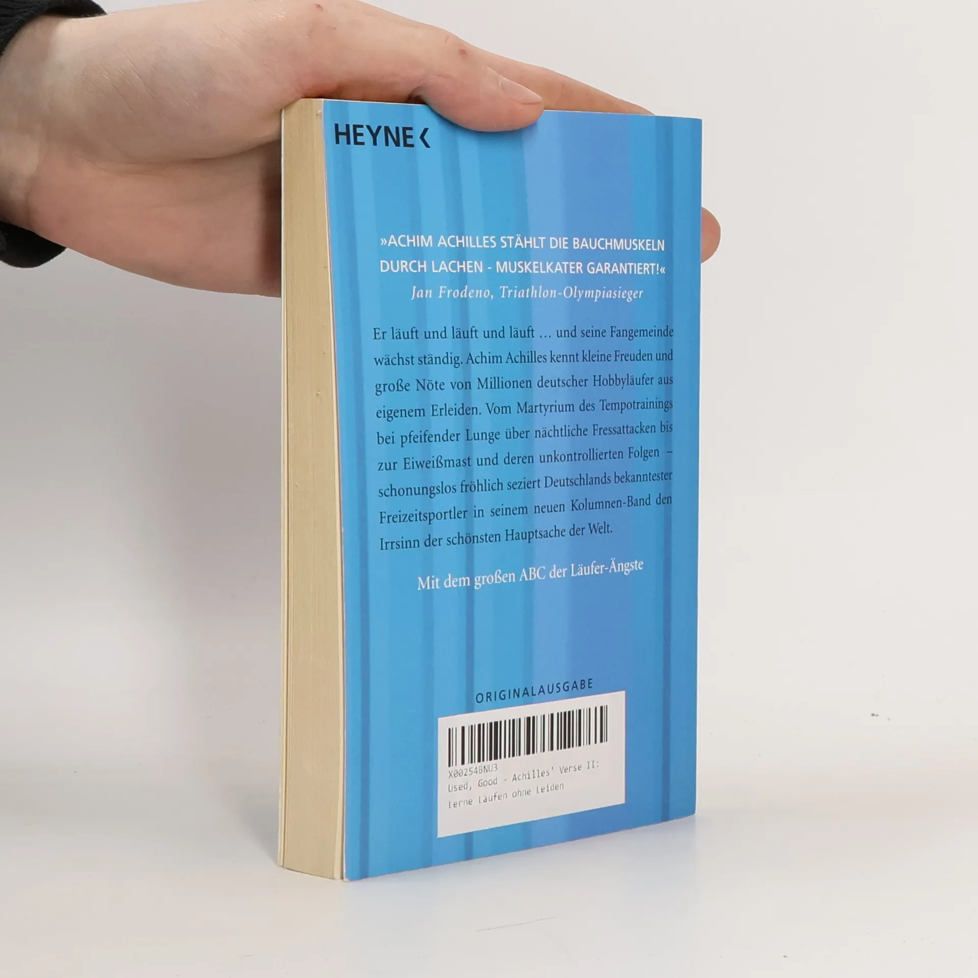»Laufen hat nichts mit Lachen zu tun!« Achim Achilles Vom Martyrium des Tempotrainings über nächtliche Fressattacken bis zum Pronationsmittelbrückenleichtbauschuh – schonungslos seziert Deutschlands bekanntester Freizeitsportler den Irrsinn der schönsten Hauptsache der Welt. Er läuft und läuft und läuft … und seine Fangemeinde wächst ständig. Denn niemand bringt die Freuden und Nöte der Hobbyläufer besser auf den Punkt als Achim Achilles. Von der Kunst des Tempolaufs bei pfeifender Lunge bis zum Superschuh mit Pronationsmittelbrückenleichtbautechnologie – in seinem neuen Kolumnen-Band seziert Deutschlands bekanntester Freizeitsportler wieder schonungslos den alltäglichen Irrsinn des Freizeitsports.