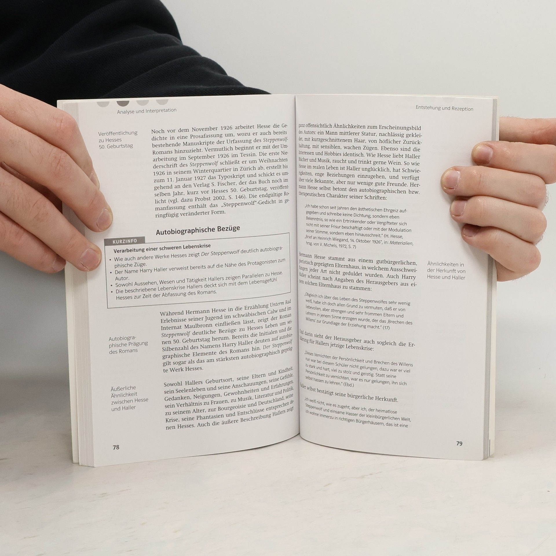 Sie haben Fragen an das Werk? - Warum gerät Harry Haller in eine Lebenskrise? - Was soll er im „Magischen Theater“ lernen? - Welches Schreckensszenario entwirft Hesse in der „Hochjagd auf Automobile“? Lektürehilfen - damit keine Fragen offen bleiben! Ausführliche Inhaltsangabe: schnell nachlesen, was geschieht Umfassende Interpretation und Analyse: zentrale Themen und Motive verständlich erklärt Kurzinfo: das Wichtigste eines Kapitels knapp zusammengefasst Typische Abitur-Fragen mit ausführlichen Lösungen: wissen, worauf es in der Prüfung ankommt Schnellcheck: wesentliche Aspekte auf einen Blick – für die schnelle Wiederholung kurz vor der Klausur