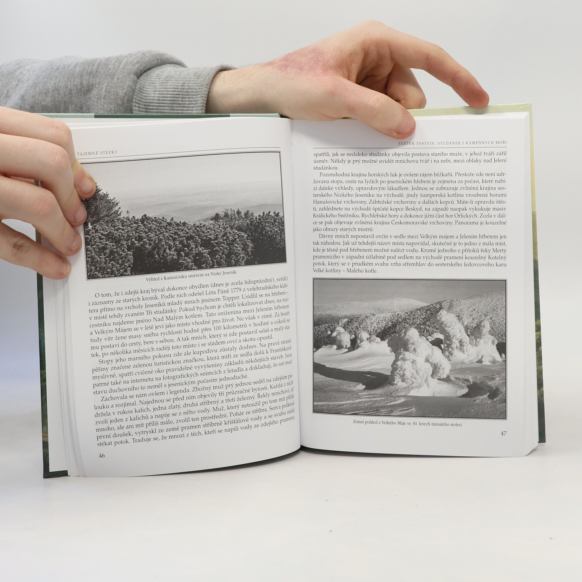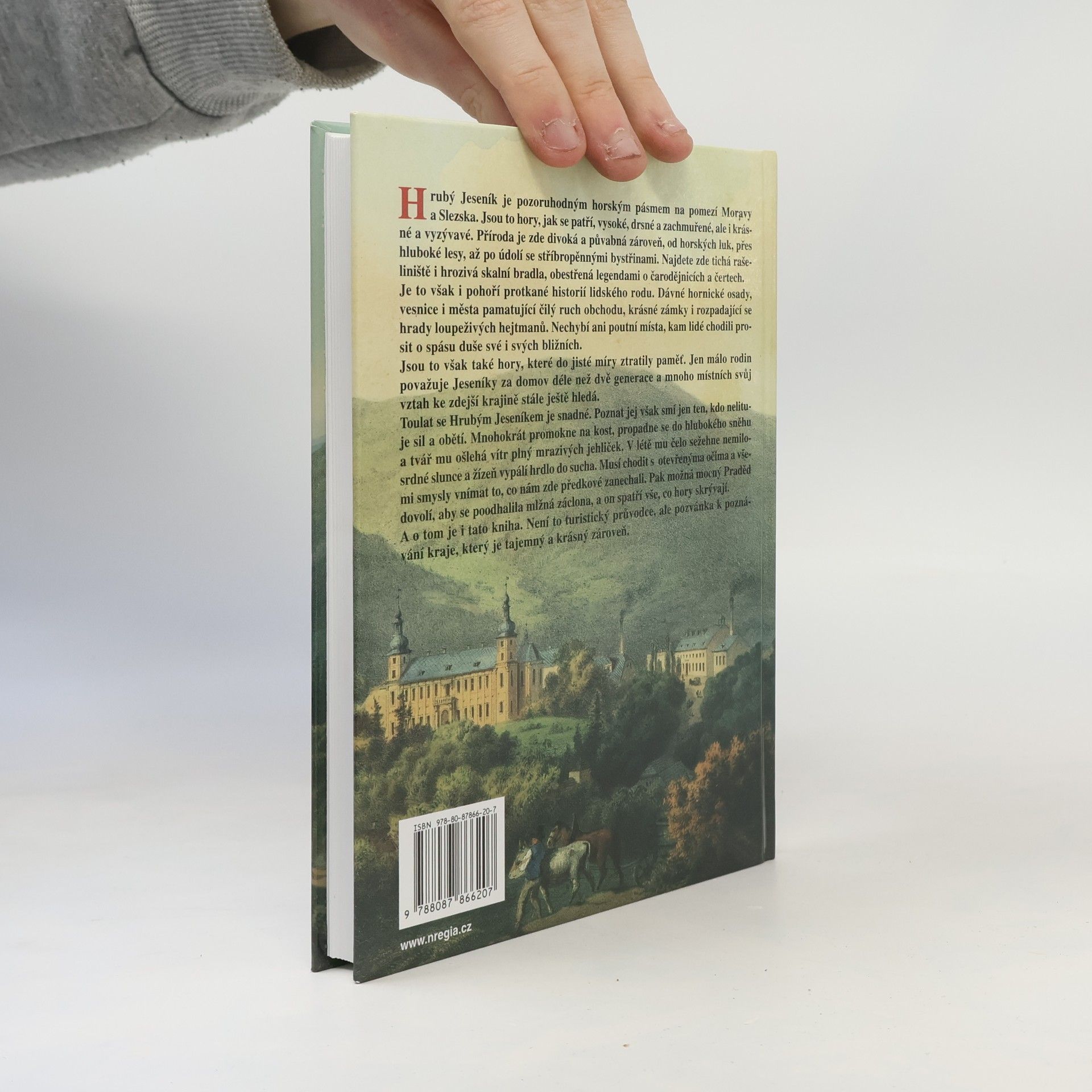 Hrubý Jeseník je pozoruhodným horským pásmem na pomezí Moravy a Slezska. Jsou to hory, jak se patří, vysoké, drsné a zachmuřené, ale i krásné a vyzývavé. Příroda je zde divoká a půvabná zároveň, od horských luk, přes hluboké lesy, až po údolí se stříbropěnnými bystřinami. Najdete zde tichá rašeliniště i hrozivá skalní bradla, obestřená legendami o čarodějnicích a čertech. Je to však i pohoří protkané historií lidského rodu. Dávné hornické osady, vesnice i města pamatující čilý ruch obchodu, krásné zámky i rozpadající se hrady loupeživých hejtmanů. Nechybí ani poutní místa, kam lidé chodili prosit o spásu duše své i svých bližních. Jsou to však také hory, které do jisté míry ztratily paměť. Jen málo rodin považuje Jeseníky za domov déle než dvě generace a mnoho místních svůj vztah ke zdejší krajině stále ještě hledá. Toulat se Hrubým Jeseníkem je snadné. Poznat jej však smí jen ten, kdo nelituje sil a obětí. Mnohokrát promokne na kost, propadne se do hlubokého sněhu a tvář mu ošlehá vítr plný mrazivých jehliček. V létě mu čelo sežehne nemilosrdné slunce a žízeň vypálí hrdlo do sucha. Musí chodit s otevřenýma očima a všemi smysly vnímat to, co nám zde předkové zanechali. Pak možná mocný Praděd dovolí, aby se poodhalila mlžná záclona a on spatří vše, co hory skrývají. A o tom je i tato kniha. Není to turistický průvodce, ale pozvánka k poznávání kraje, který je tajemný a krásný zároveň.
