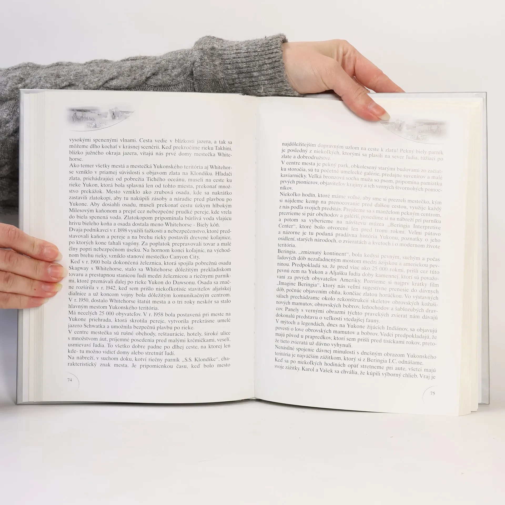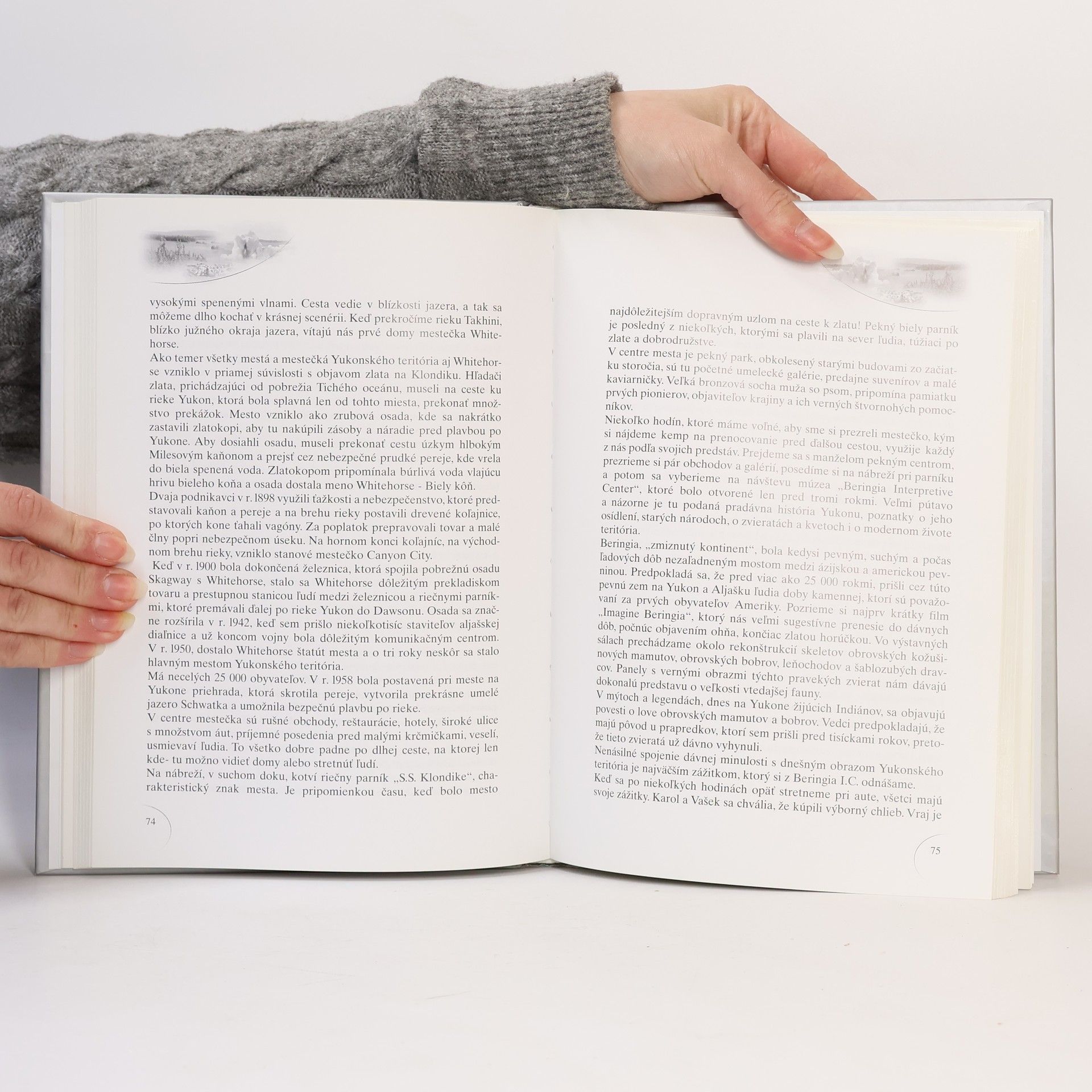 ...niekoľko metrov od auta sa z kríkov na brehu rieky vynoril čierny medveď, vyškrabe sa na padnutý kmeň stromu a kráča po ňom smerom k mostíku. Keď sme sa prebrali z prvého prekvapenia, začali sme jeden cez druhého zháňať aparáty a vzrušene vykrikovať. To zrejme medveďa vyrušilo z kľudu a začal sa rýchle vzďaľovať po mostíku... Obsah: Neplánovane v New Yorku, Na pobrežie Tichého oceánu, Seward a Národný park Kenai, Predsa ideme ďalej, Talkeetna a Mont Mc Kinley, Národný park Denali, Nenana, Fairbanks a Tok, Top of the World-najkrajšia cesta na svete, Inuvik a Eskimáci, Zlatokopecká história Dawson City, Whitehorse-vlajúca hriva bieleho koňa, Skagway a Cesta 1898, Potulky okolo Skagway, Atlin a Warm Bay, Kluane a Wrangell-Saint Elias, Na zemi a vo vzduchu, Valdez, Ropa a ryby, Zátoka Princa Williama, Z Valdezu do Anchorage, Anchorage.