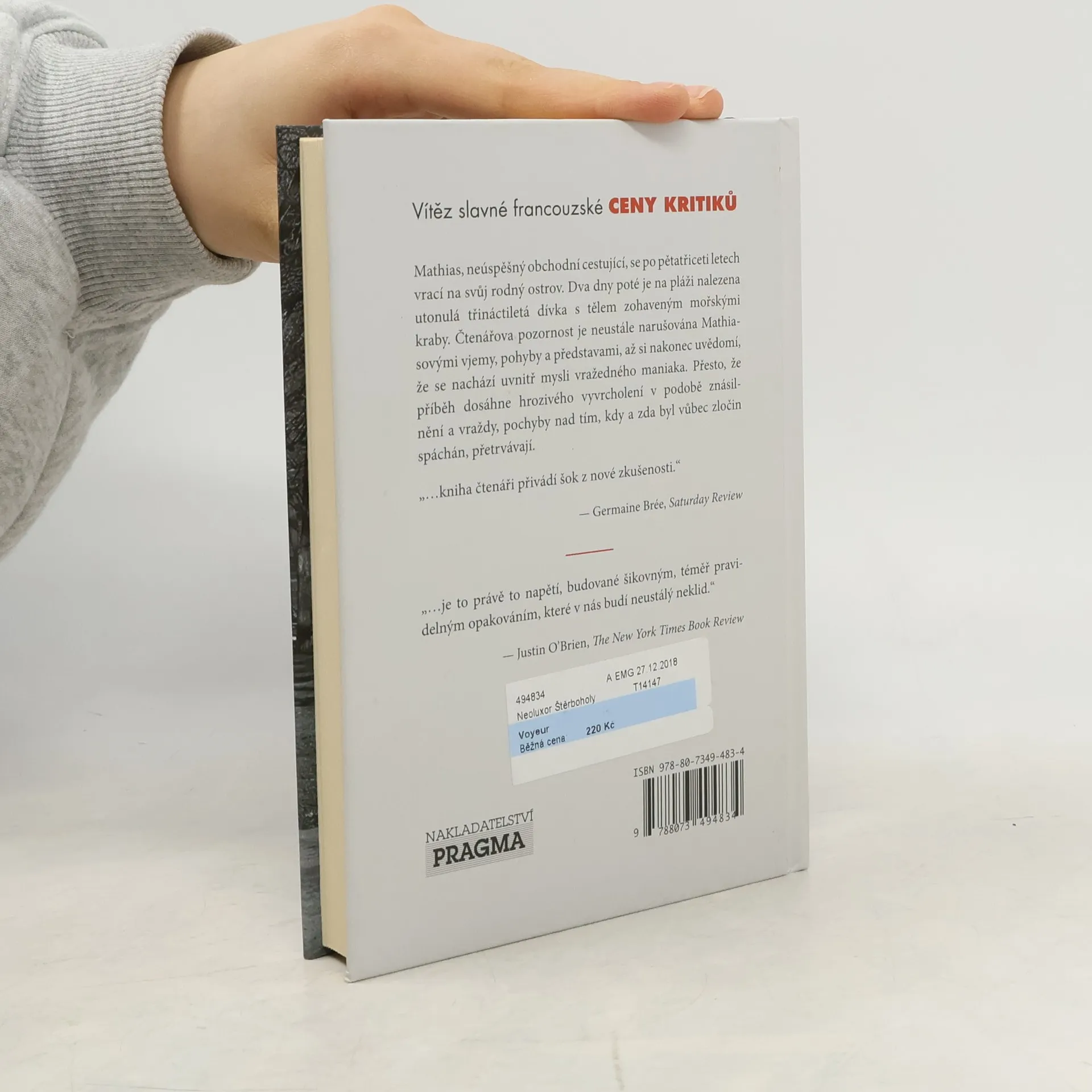 Jedno ze zásadních děl jednoho z největších francouzských spisovatelů 20. století, jednoho ze zakladatelů nového románu, Alaina Robbe-Grilleta. Mathias, neúspěšný obchodní cestující, se po pětatřiceti letech vrací na svůj rodný ostrov. Dva dny poté je na pláži nalezena utonulá třináctiletá dívka s tělem zohaveným mořskými kraby. Čtenářova pozornost je neustále narušována Mathiasovými vjemy, pohyby a představami, až si nakonec uvědomí, že se nachází uvnitř mysli vražedného maniaka. Přesto, že příběh dosáhne hrozivého vyvrcholení v podobě znásilnění a vraždy, pochyby nad tím, kdy a zda byl vůbec zločin spáchán, přetrvávají.
