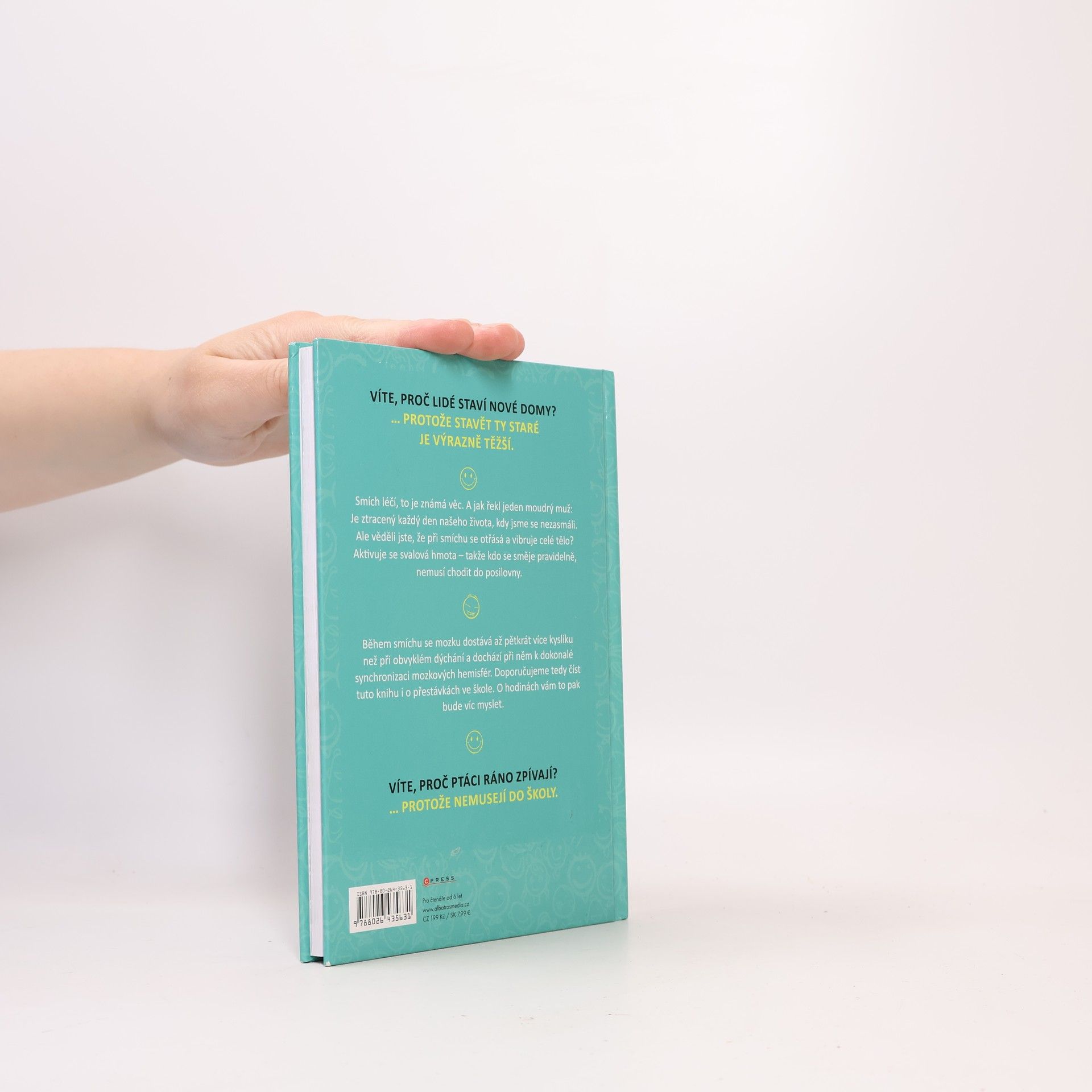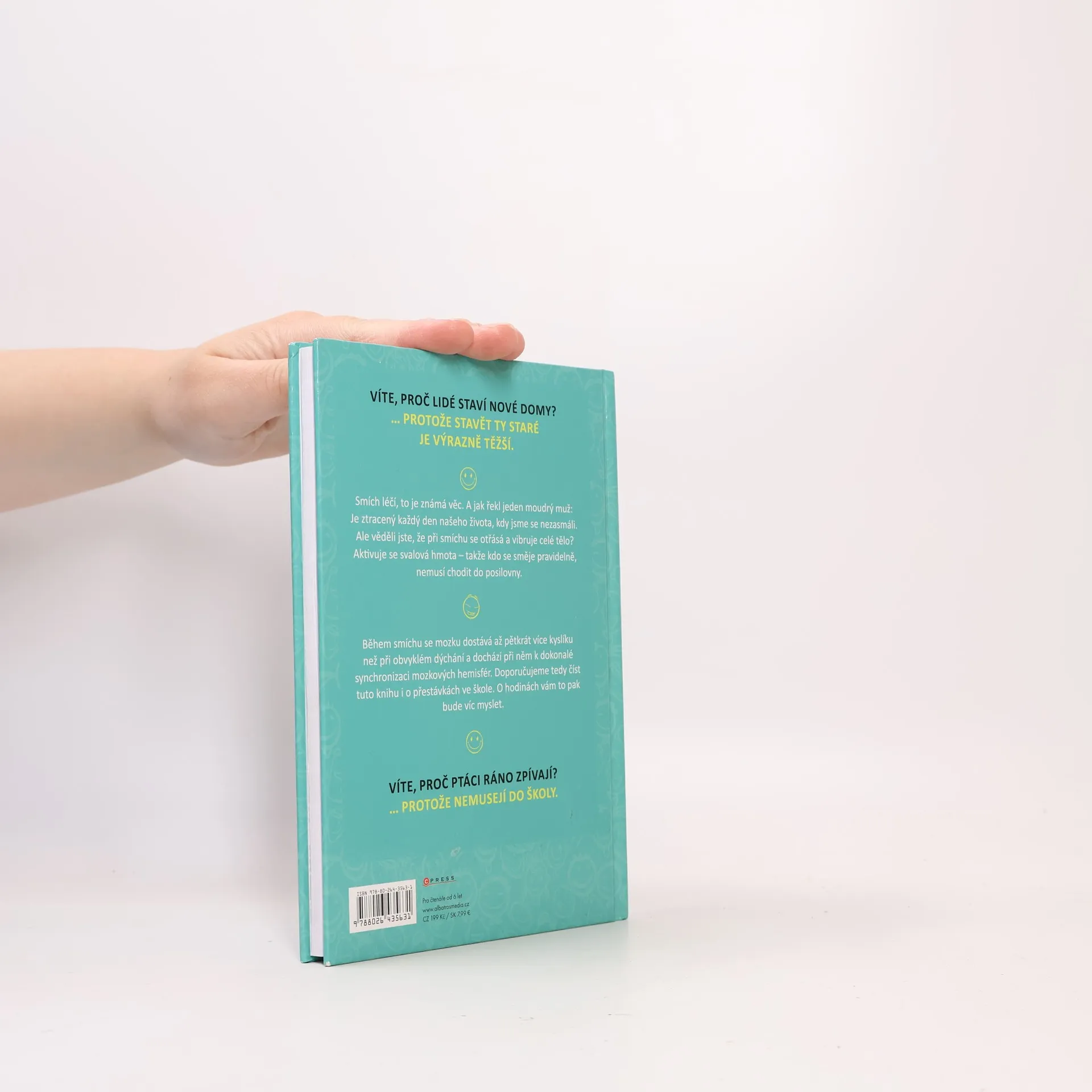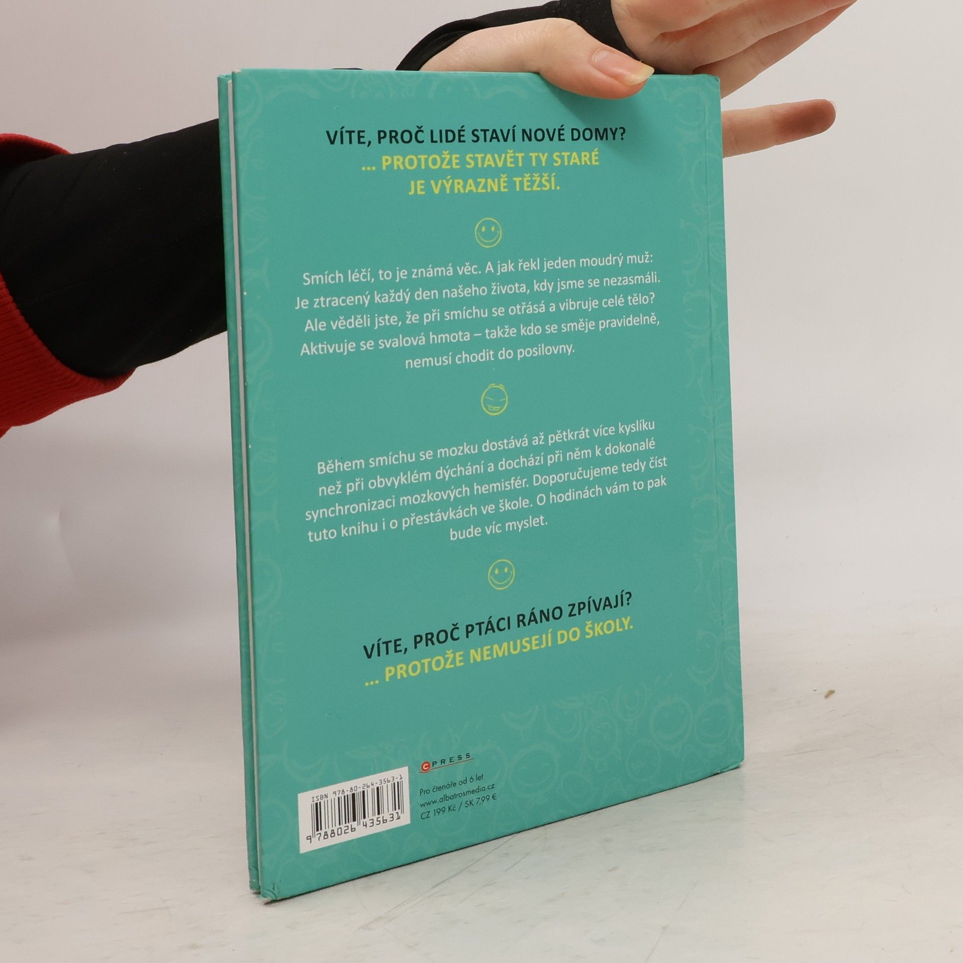 Tato kniha plná vtipů udělá radost všem. Ať už se začtete do vtipů o Pepíčkovi, ze školy, o prarodičích, z pohádek nebo dalších, pořádně se zasmějete a budete mít dobrou náladu. Věděli jste, že během smíchu se mozku dostává až 5 x více kyslíku než při obvyklém dýchání a dochází při něm k dokonalé synchronizaci mozkových hemisfér? Doporučujeme tedy číst tuto knihu i o přestávkách ve škole. O hodinách vám to pak bude víc myslet.