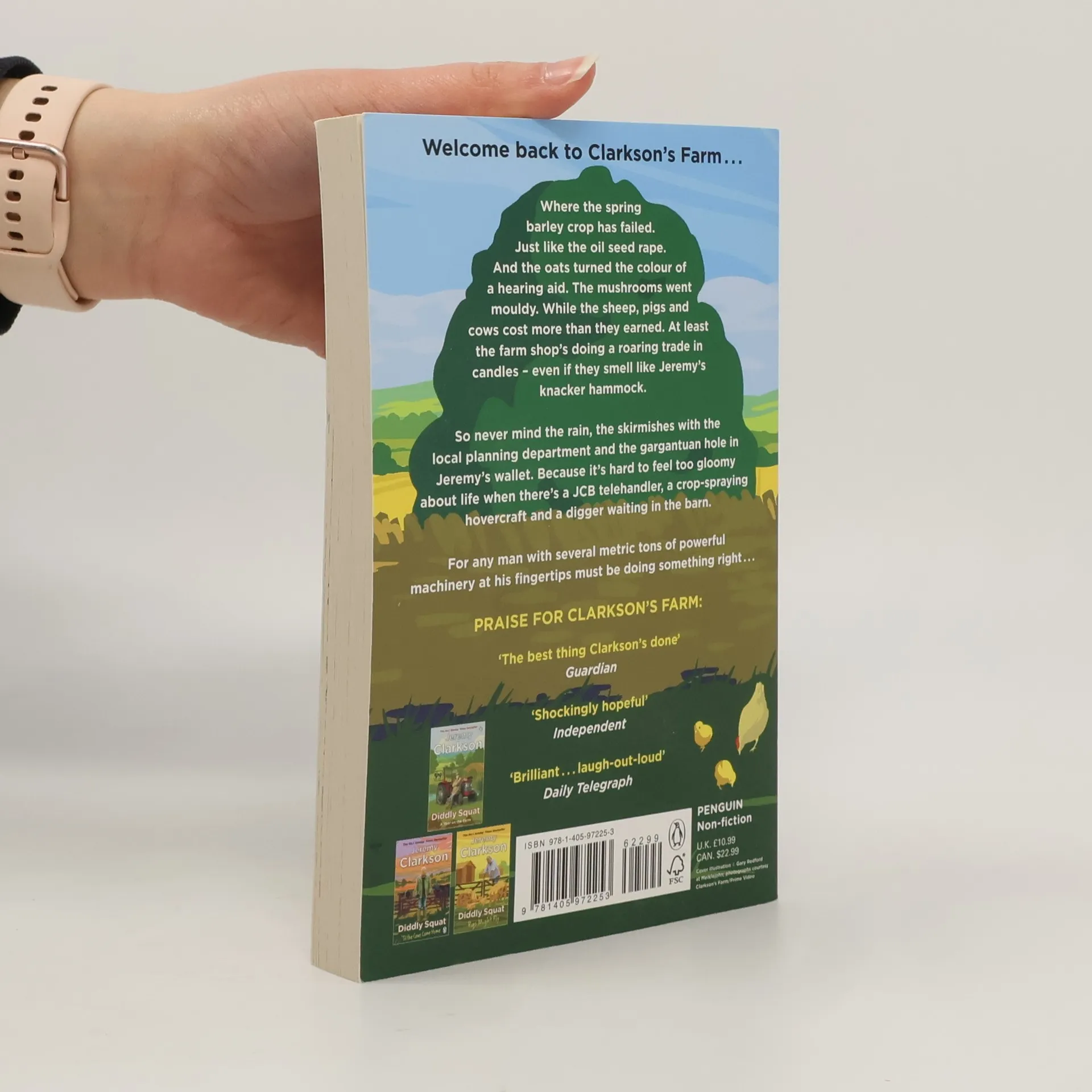 It's been another memorable year on Diddly Squat Farm - will the chickens finally come home to roost? ---- Welcome back to Clarkson's Farm. So, that went well . . . The spring barley crop failed. Just like the oil seed rape. And the durum wheat. Then the oats turned the colour of a hearing aid and the mushrooms went mouldy. Farming sheep, pigs and cows was hardly more lucrative. Jeremy would be better off trying to breed ostriches. But in the face of uncooperative weather, the relentless realities of the agricultural economy, bureaucracy, a truculent local planning department and the world's persistent refusal to recognise his ingenuity and genius, our hero's not beaten yet. Not while the farm shop's still doing a roaring trade in candles that smell like his knacker hammock, he isn't. On the face of it, the challenges of making a success of Diddly Squat are enough to have you weeping into your (Hawkstone) beer, but misery loves company and in girlfriend Lisa, Farm Manager Kaleb, Cheerful Charlie and Gerald his Head of Security Jeremy knows he's got the best. And it's hard for a chap to feel too gloomy about things when there's a JCB telehandler, a crop-spraying hovercraft and a digger in the barn. Because as a wise man* once said, 'there's no man alive who wouldn't have fun with a digger . . .' *Jeremy Number 1 Sunday Times bestseller, October 2024