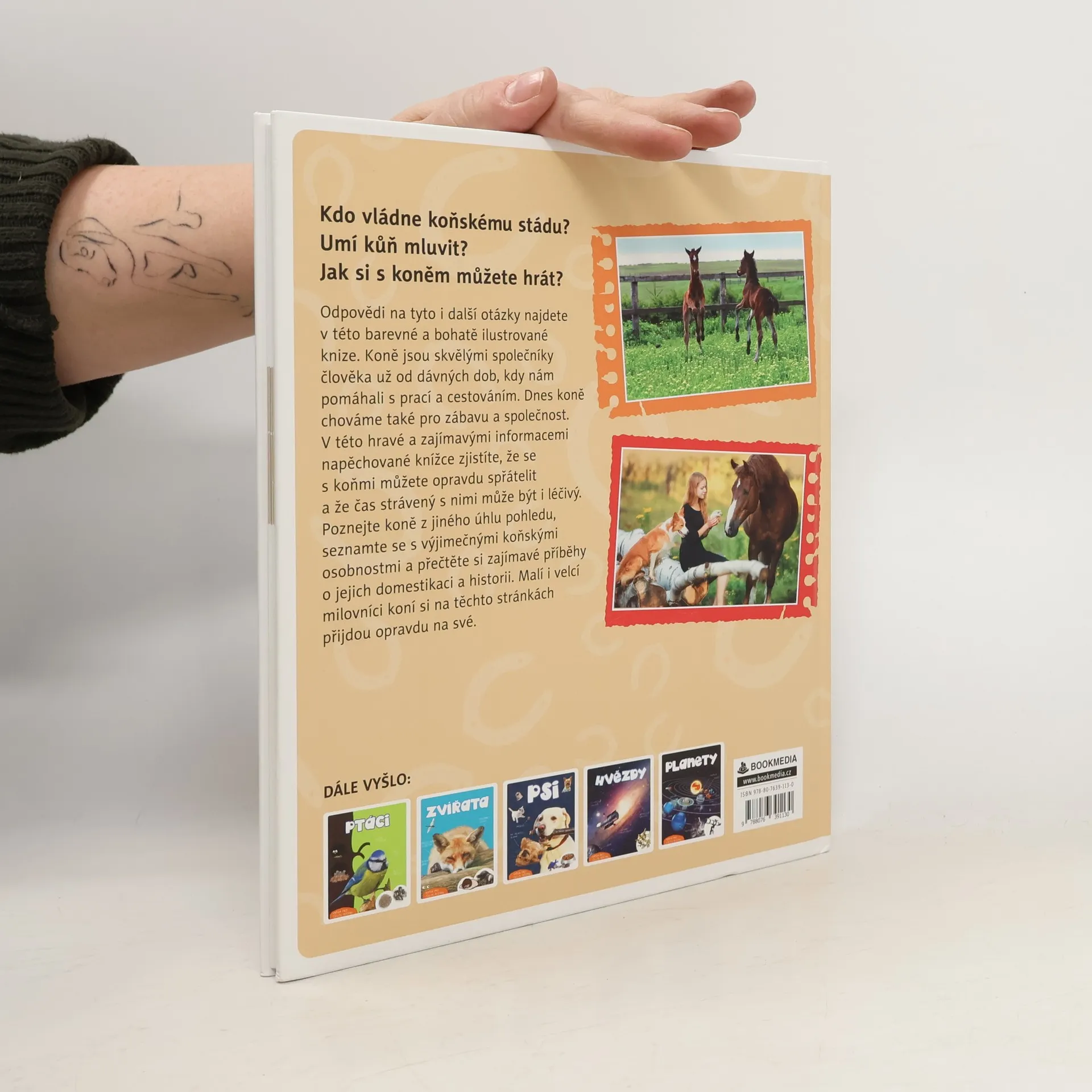 Koně jsou veliká a atraktivní zvířata, které miluje snad každé dítě. Dokážete ale pojmenovat všechny části koňského těla? A víte, proč se toto zvíře neustále leká? Jak je to s jeho historií a jak si jej člověk vůbec kdysi ochočil? Tato kniha je určená pro všechny malé i velké zvědavce, kteří chtějí proniknout do světa koní a poznat je i z jiného úhlu než jen jízdou. V této zábavné a barevné knížce doslova napěchované zajímavými informacemi se totiž dozvíte snad vše, co o těchto majestátních tvorech jen lze. Spřátelte se s koňmi, pobyt v jejich přítomnosti totiž může být doslova léčivý!