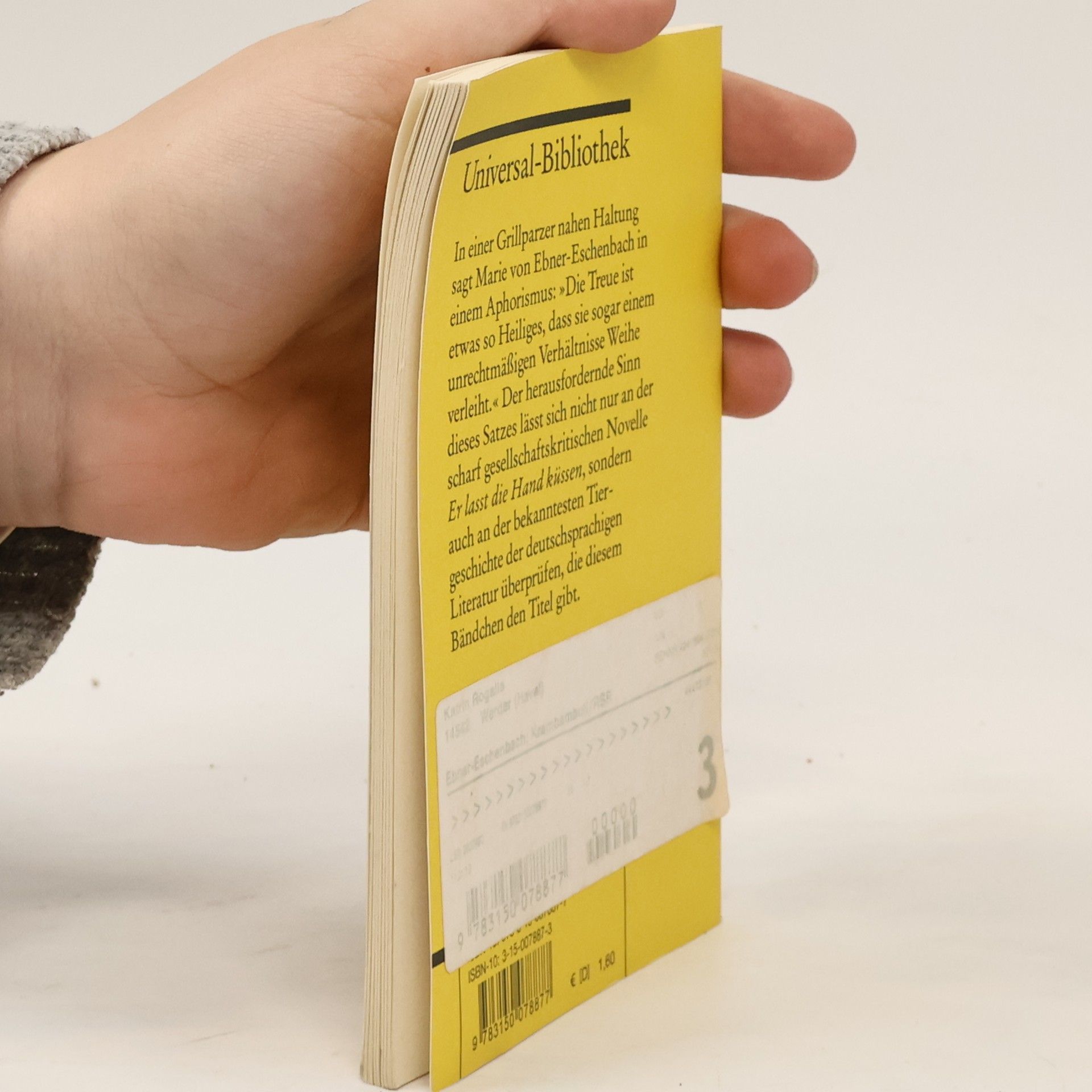 In einer Grillparzer nahen Haltung sagt Marie von Ebner-Eschenbach in einem Aphorismus: »Die Treue ist etwas so Heiliges, dass sie sogar einem unrechtmäßigen Verhältnisse Weihe verleiht.« Der herausfordernde Sinn dieses Satzes lässt sich nicht nur an der scharf gesellschaftskritischen Novelle »Er lasst die Hand küssen«, sondern auch an der bekanntesten Tiergeschichte der deutschsprachigen Literatur überprüfen, die diesem Bändchen den Titel gibt. Mit Erinnerungen an die Dichterin von Franz Dubsky. - Text in neuer Rechtschreibung