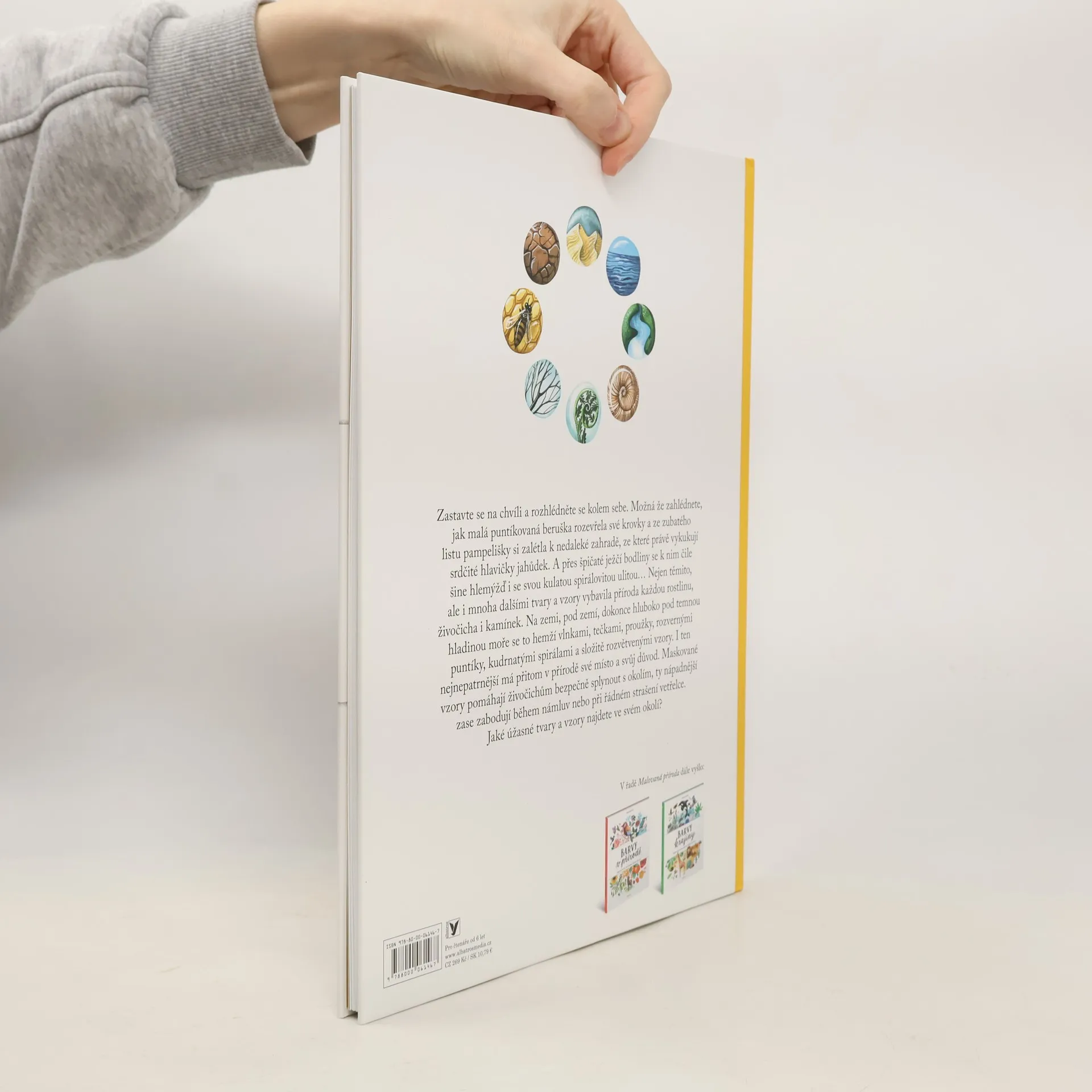Zastavte se na chvíli a obdivujte pestrobarevné vzory přírody! Zastavte se na chvíli a rozhlédněte se kolem sebe. Možná že zahlédnete puntíkovanou berušku, zubatý lístek pampelišky anebo šnečí ulitu ve tvaru malé spirály... Nejen těmito, ale i mnoha dalšími tvary a vzory vybavila příroda každičkou rostlinu, živočicha nebo kamínek. Na zemi i pod zemí se to hemží vlnkami, tečkami, proužky, rozvernými puntíky, kudrnatými spirálami a složitě rozvětvenými vzory. I ten nejnepatrnější má přitom v přírodě své místo a svůj důvod. Jaké úžasné tvary a vzory najdete ve svém okolí?