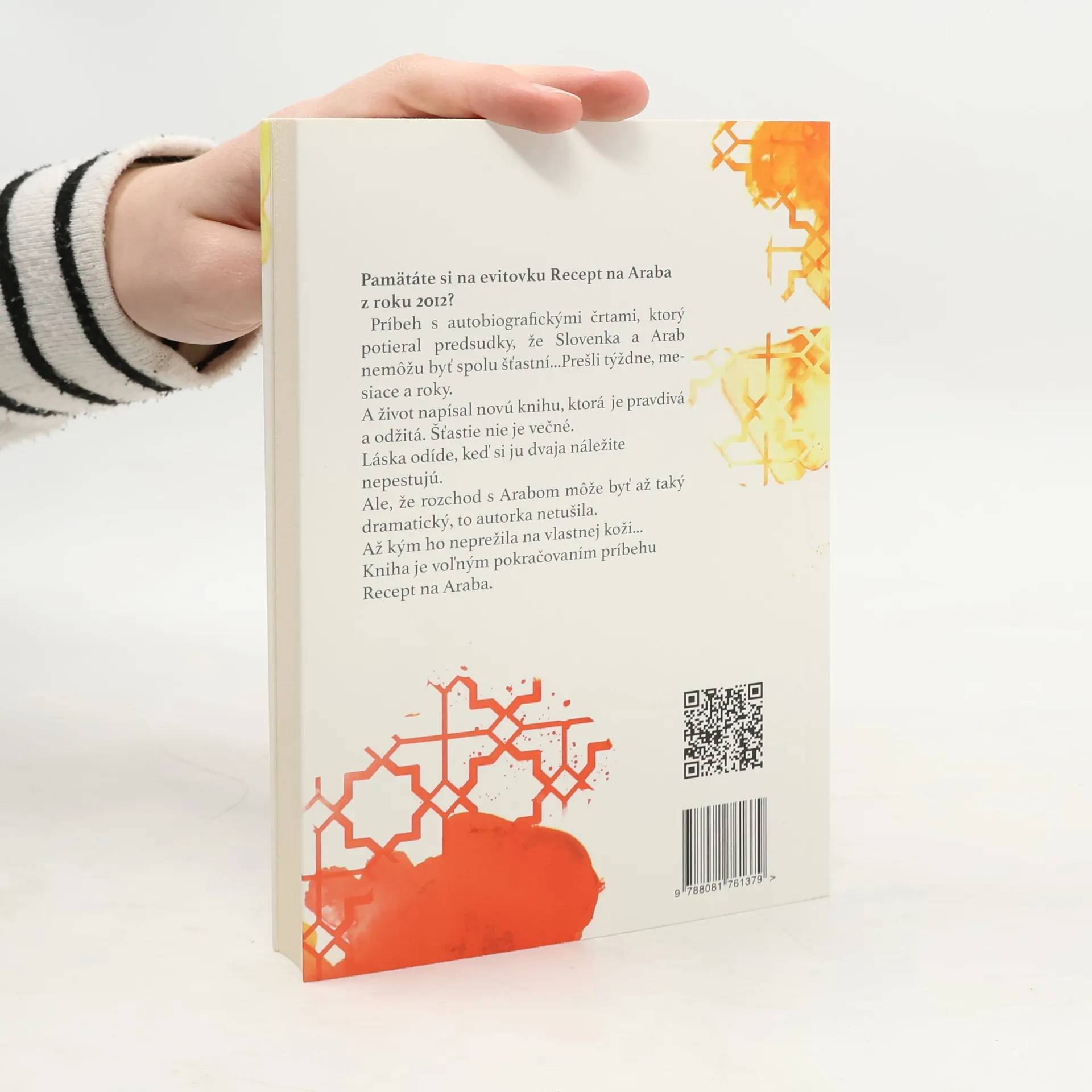 Ako dopadli životy hrdinov bestselleru Recept na Araba. Pamätáte si na evitovku Recept na Araba z roku 2012? Príbeh s autobiografickými črtami, ktorý potieral predsudky, že Slovenka a Arab nemôžu byť spolu šťastní... Prešli týždne, mesiace a roky. A život napísal novú knihu, ktorá je pravdivá a odžitá. Šťastie nie je večné. Láska odíde, keď si ju dvaja náležite nepestujú. Ale, že rozchod s Arabom môže byť až taký dramatický, to autorka netušila. Až kým ho neprežila na vlastnej koži..