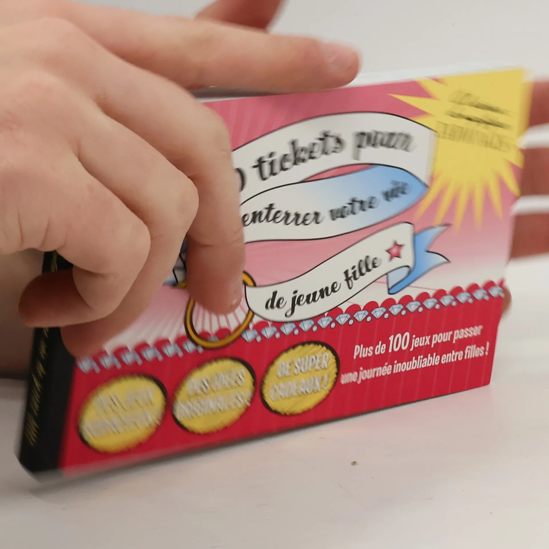 Votre copine se marie? Vous souhaitez enterrer sa vie de jeune fille de façon originale? Découvrez ces 100 tickets à gratter : des jeux drôles, fous, audacieux, vous attendent. De quoi passer une journée inoubliable ! A vous de jouer, et amusez-vous bien !