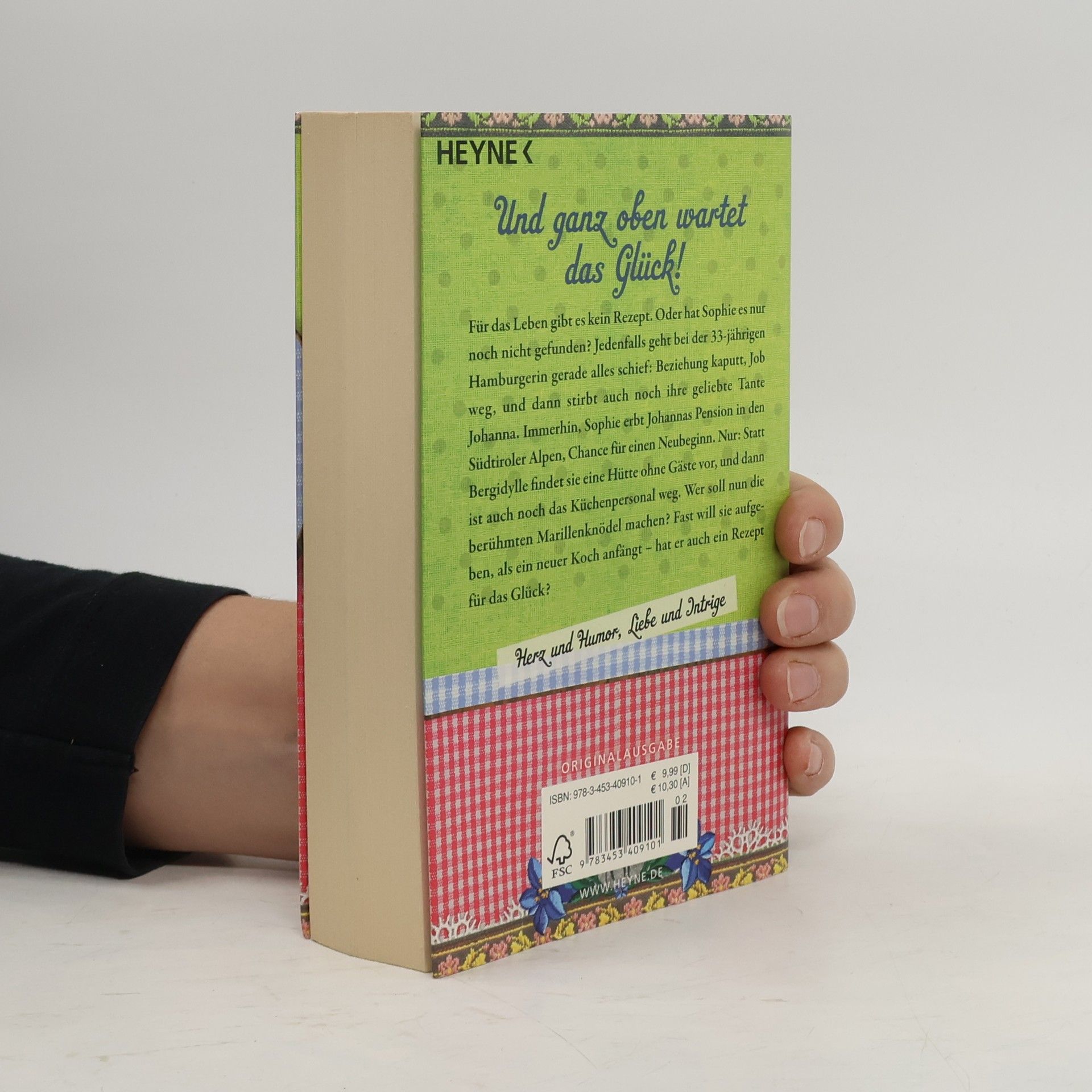 Gibt es ein Rezept für die Liebe? Für das Leben gibt es kein Rezept. Oder hat Sophie es nur noch nicht gefunden? Jedenfalls geht bei der 33-jährigen Hamburgerin gerade alles schief: Beziehung kaputt, Job weg, und dann stirbt auch noch ihre geliebte Tante Johanna. Immerhin: Sophie erbt Johannas Pension in den Südtiroler Alpen, Chance für einen Neubeginn. Nur: Statt Bergidylle findet sie eine Hütte ohne Gäste vor, und dann ist auch noch das Küchenpersonal weg. Wer soll nun die berühmten Marillenknödel machen? Fast will sie aufgeben, als ein neuer Koch anfängt – hat er auch ein Rezept für das Glück? Lesen Sie auch die Vorgeschichte als e-book in „Marillenknödel und das Geheimnis des Glücks“!