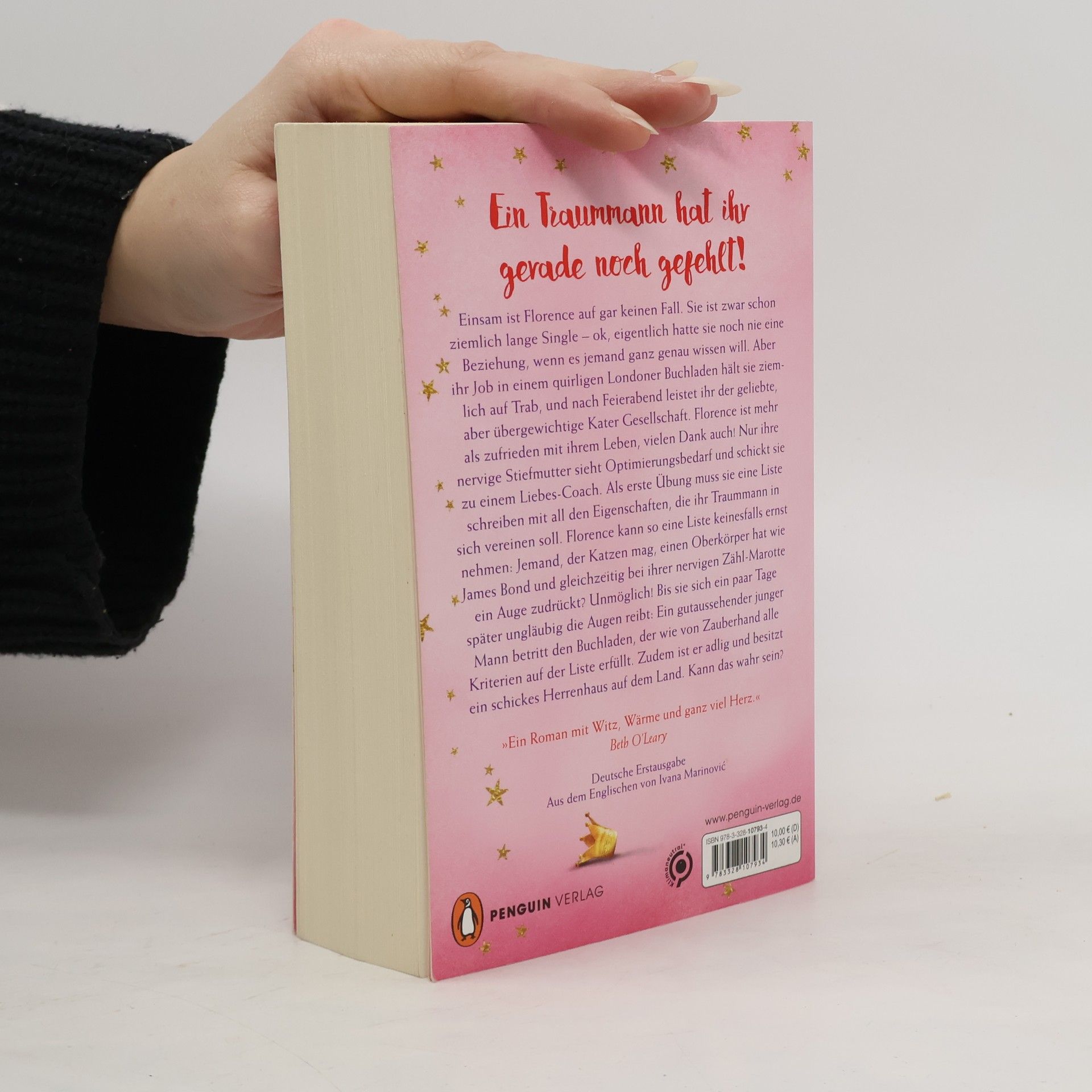 Ein Traummann hat ihr gerade noch gefehlt! Einsam ist Florence auf gar keinen Fall. Sie ist zwar schon ziemlich lange Single – ok, eigentlich hatte sie noch nie eine Beziehung, wenn es jemand ganz genau wissen will. Aber ihr Job in einem quirligen Londoner Buchladen hält sie ziemlich auf Trab, und nach Feierabend leistet ihr der geliebte, aber übergewichtige Kater Gesellschaft. Florence ist mehr als zufrieden mit ihrem Leben, vielen Dank auch! Nur ihre nervige Stiefmutter sieht Optimierungsbedarf und schickt sie zu einem Liebes-Coach. Als erste Übung muss sie eine Liste schreiben mit all den Eigenschaften, die ihr Traummann in sich vereinen soll. Florence kann so eine Liste keinesfalls ernst nehmen: Jemand, der Katzen mag, einen Oberkörper hat wie James Bond und gleichzeitig bei ihrer nervigen Zähl-Marotte die Augen zudrückt? Unmöglich! Bis sie sich ein paar Tage später ungläubig die Augen reibt: Ein gutaussehender junger Mann betritt den Buchladen, der wie von Zauberhand alle Kriterien auf der Liste erfüllt. Zudem ist er adlig und besitzt ein schickes Herrenhaus auf dem Land. Kann das wahr sein?»Ein Roman mit Witz, Wärme und ganz viel Herz.« Beth O’Leary