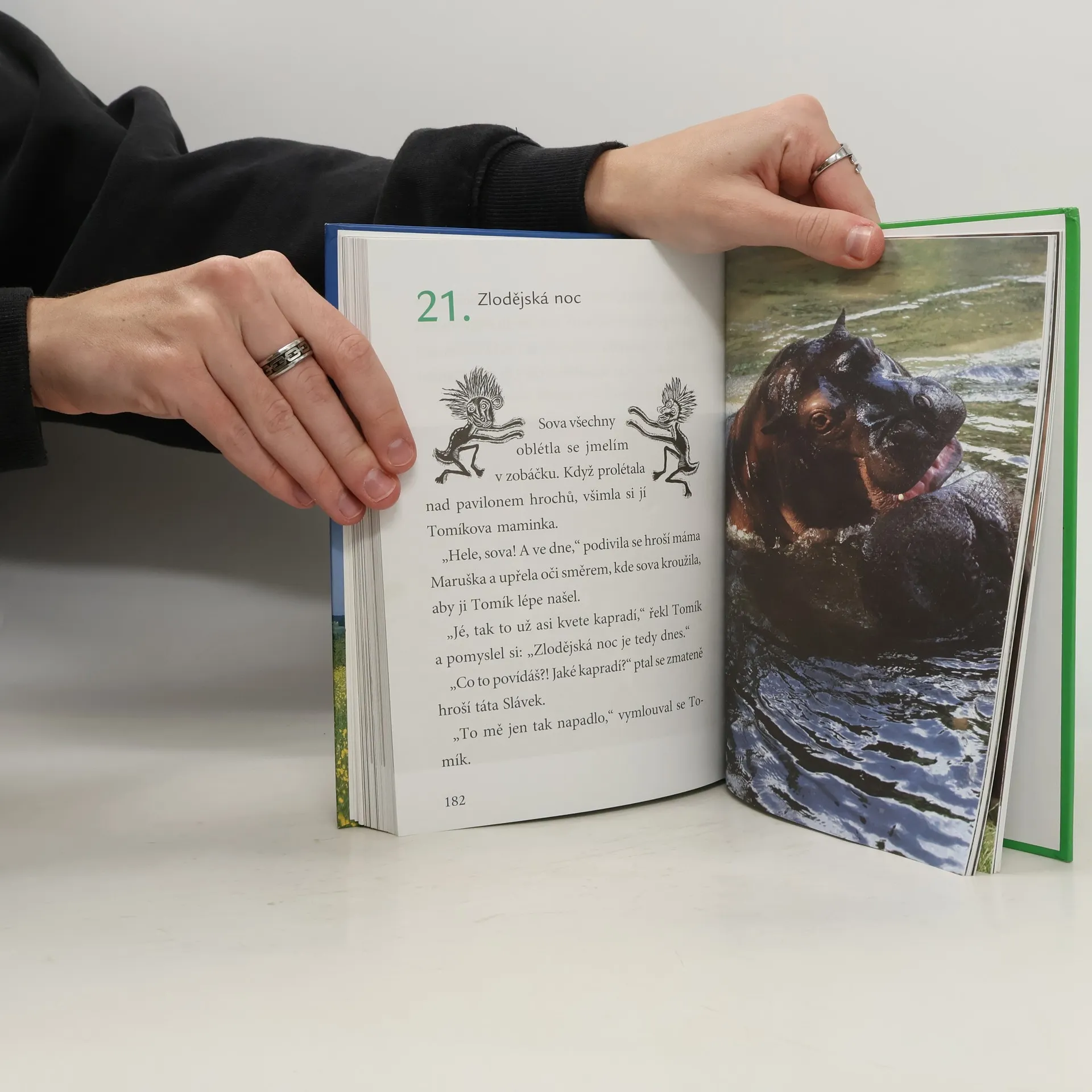Vyprávění o podivuhodném světě zvířecích mláďat, která spolu žijí v zoologické zahradě, se vám při četbě změní v napínavý filmový seriál, a sami se rozhodnete, zda ve vaší představě bude kreslený, loutkový, nebo zda dáte přednost skutečným živým bytostem, s nimiž se při návštěvách své nejoblíbenější zahrady setkáváte. Kachnička Kačka, gorilka Moja, hrošík Tomík, mladá žirafa Mahulenka, Lomi, hříbě vzácného koně Převalského, i hodný skřítek Fonci vás vezmou mezi sebe a společně se vydáte za dobrodružstvím. Více nebudeme prozrazovat, snad jen to, že se na setkání s vámi těší moudrá paní sova, spravedlivý tygr Assuri, všichni lachtani, tučňáci i sloni a také slečna Slunéčková s panem admirálem Babočkou a mnoho dalších obyvatel zahrady. Půvabné příběhy ze života zvířecích mláďat v zoologické zahradě nepostrádají množství důležitých sdělení o zákonitostech zvířecího světa, a jak se na správné pohádky sluší, dobro v nich vítězí nad zlem. Emotivnost vyprávění umocňují jedinečné snímky zvířecích mláďat.