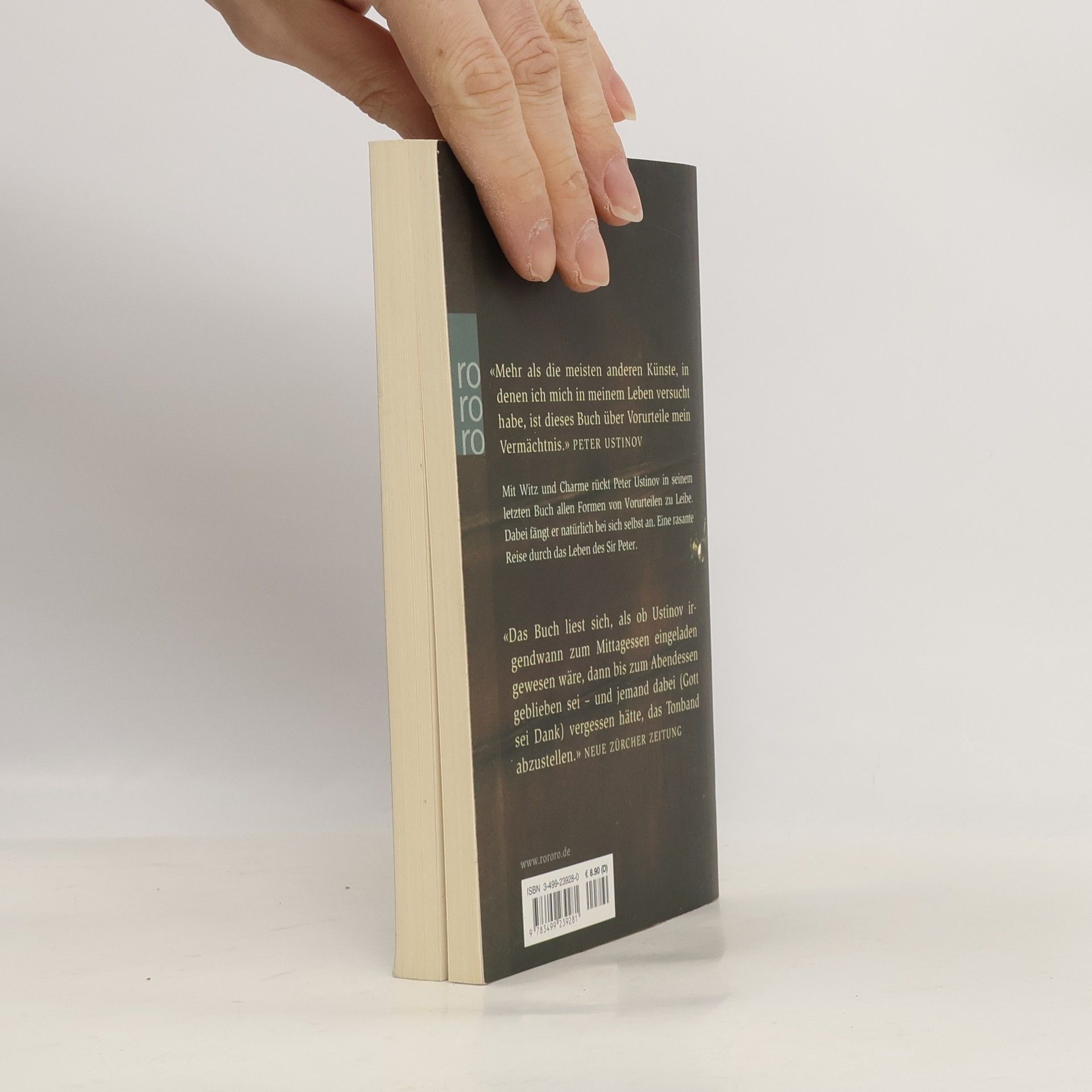 „Mehr als die meisten anderen Künste, in denen ich mich in meinen Leben versucht habe, ist dieses Buch über Vorurteile mein Vermächtnis.“ Peter UstinovMit Witz und Charme rückt Peter Ustinov in seinem letzten Buch allen Formen von Vorurteilen zu Leibe. Dabei fängt er natürlich bei sich selbst an. Eine rasante Reise durch das Leben des Sir Peter. „Das Buch liest sich, als ob Ustinov irgendwann zum Mittagessen eingeladen gewesen wäre, dann bis zum Abendessen geblieben sei – und jemand dabei (Gott sei Dank) vergessen hätte, das Tonband abzustellen.“ (Neue Zürcher Zeitung)