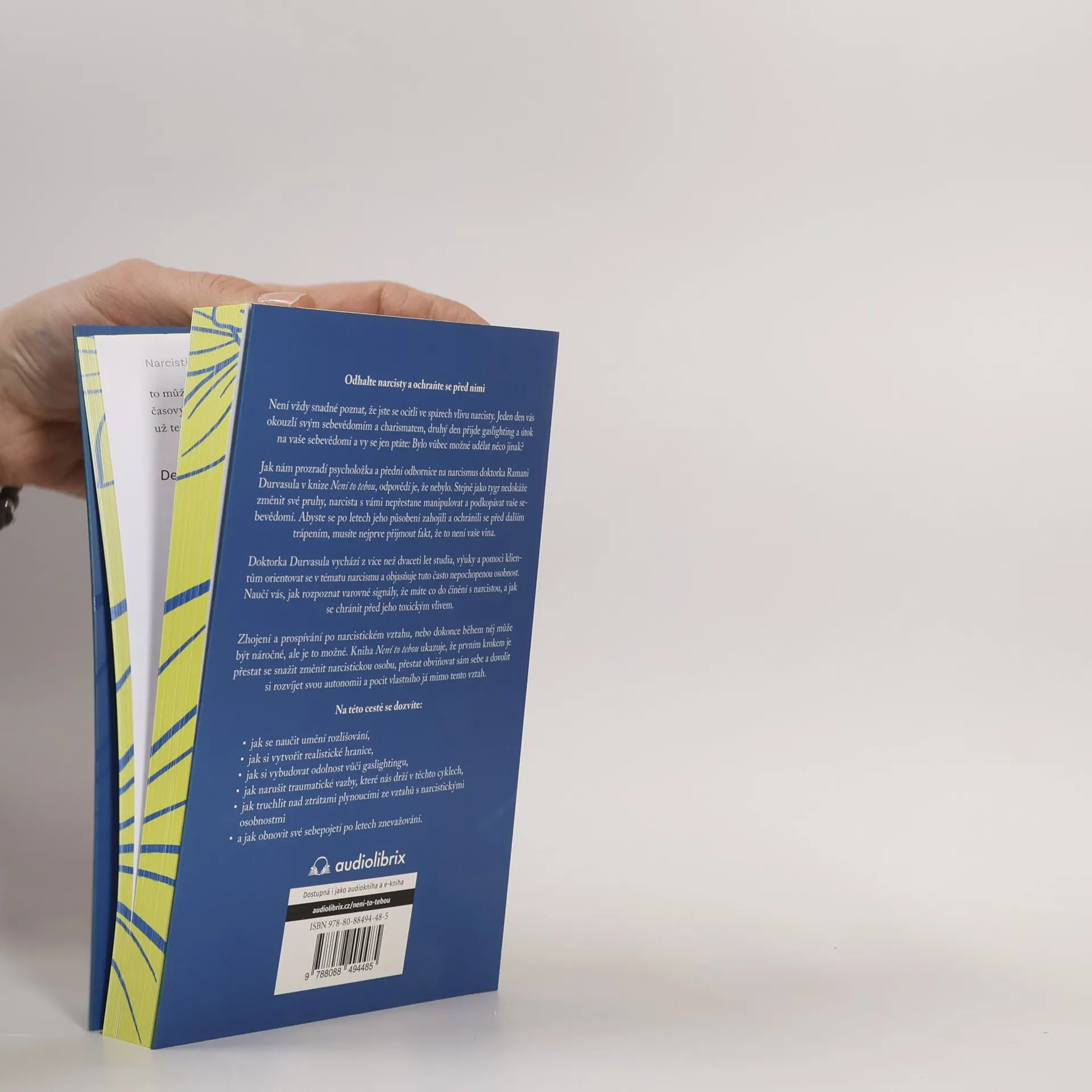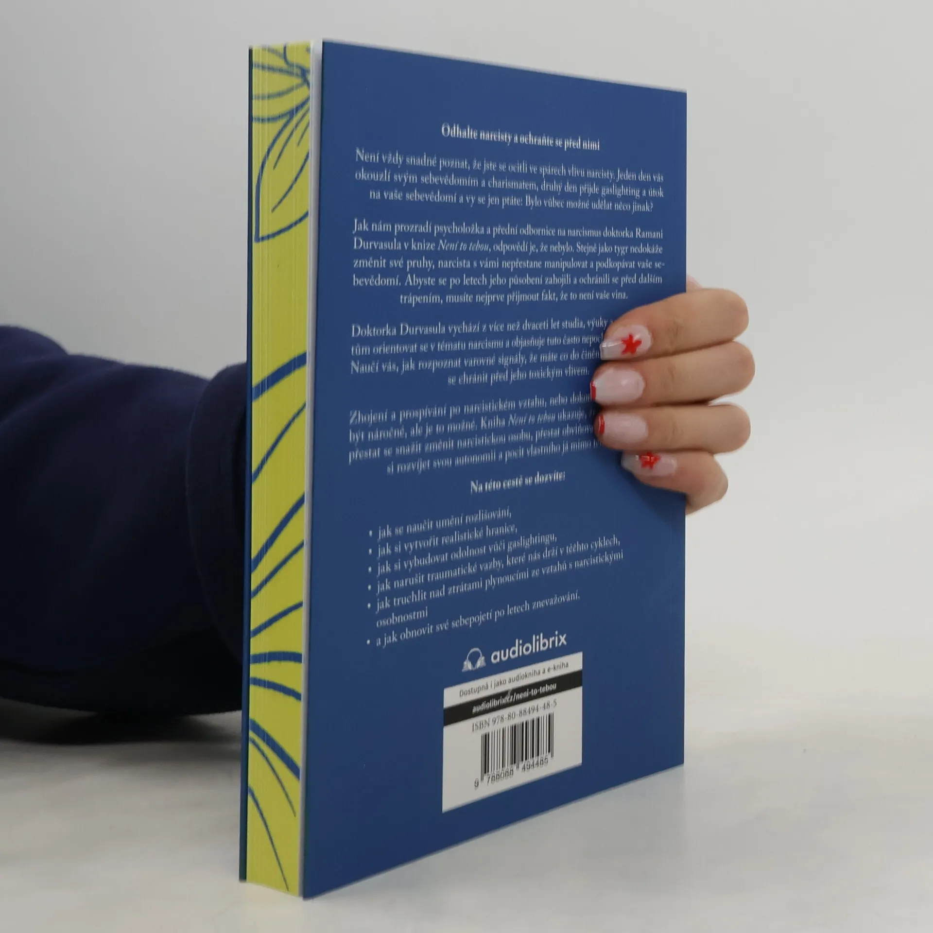 Doktorka Ramani Durvasula, psycholožka a odbornice na narcismus, přináší převratnou příručku, která vám pomůže chránit se a uzdravit se z ran způsobených narcismem, který nevidíte. Není snadné rozpoznat narcistu; může vás okouzlit sebevědomím a charismatem, ale brzy vás začne manipulovat a ničit vaše sebevědomí. Jak Dr. Durvasula ukazuje, odpovědí na otázku, co jste udělali špatně, je: absolutně nic. Stejně jako tygr nemůže změnit své pruhy, narcista se nezmění. Abyste se uzdravili a ochránili před dalším ublížením, musíte přijmout, že za to nemůžete. Tato soucitná a objevná kniha zkoumá, jak narcisté kradou naši pohodu, a nabízí cestu k uzdravení. Dr. Durvasula, s více než dvaceti lety zkušeností, odhaluje tuto často nepochopenou poruchu a ukazuje, jak rozpoznat varovné signály a chránit se před toxickým vlivem. Naučíte se, jak se stát odolnými vůči gaslightingu, odbourat traumatické vazby, truchlit nad ztrátami, stanovit realistické hranice a obnovit svůj pocit sebe sama. Uzdravení po narcistickém vztahu může být náročné, ale je možné. Prvním krokem je přestat se snažit změnit narcistu a začít si dávat svolení k podpoře své autonomie a pocitu sebe sama.