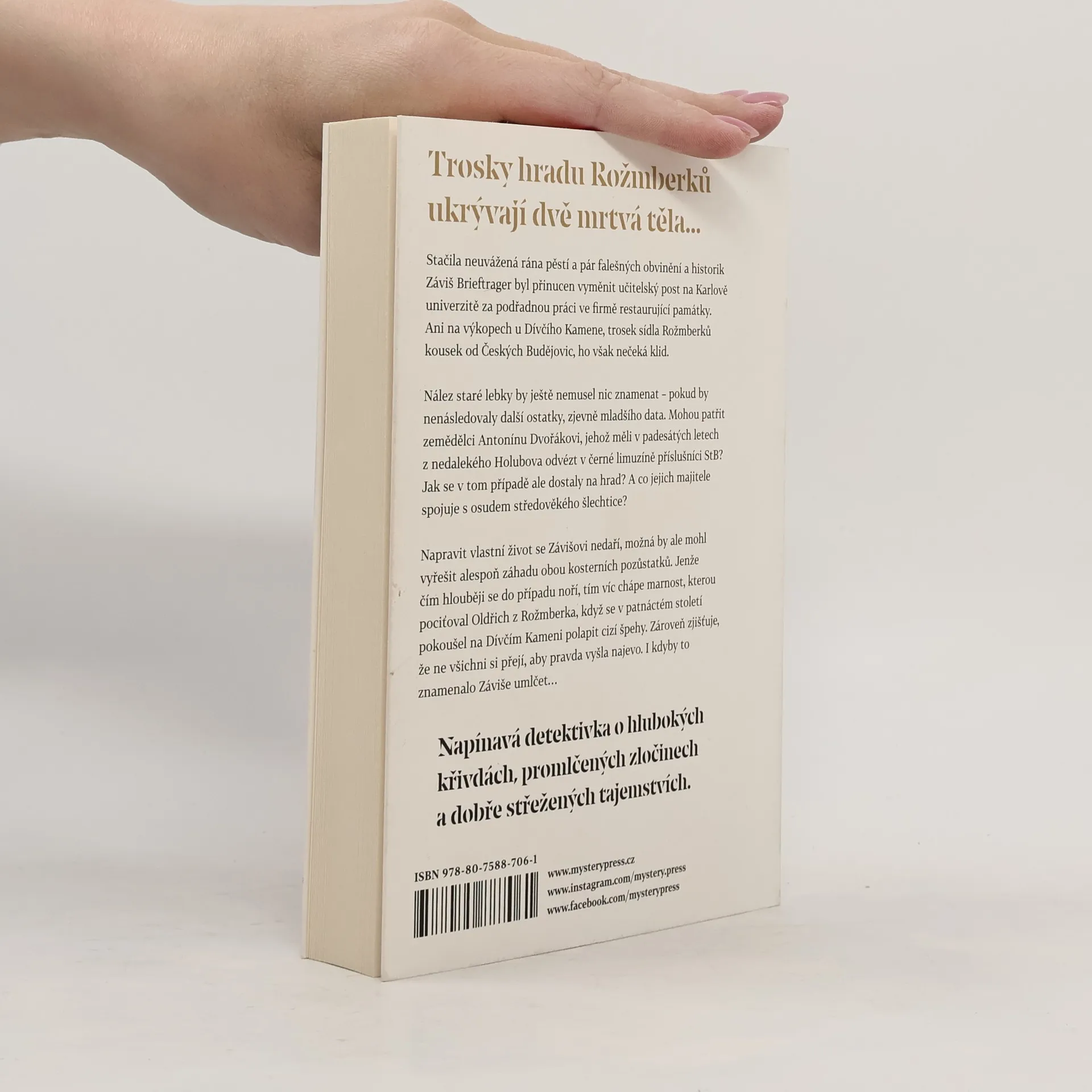 TROSKY HRADU ROŽMBERKŮ UKRÝVAJÍ DVĚ MRTVÁ TĚLA… Stačila neuvážená rána pěstí a pár falešných obvinění a historik Záviš Brieftrager byl přinucen vyměnit učitelský post na Karlově univerzitě za podřadnou práci ve firmě restaurující památky. Ani na výkopech u Dívčího Kamene, trosek sídla Rožmberků kousek od Českých Budějovic, ho však nečeká klid. Nález staré lebky by ještě nemusel nic znamenat – pokud by nenásledovaly další ostatky, zjevně mladšího data. Mohou patřit zemědělci Antonínu Dvořákovi, jehož měli v padesátých letech z nedalekého Holubova odvézt v černé limuzíně příslušníci StB? Jak se v tom případě ale dostaly na hrad? A co jejich majitele spojuje s osudem středověkého šlechtice? Napravit vlastní život se Závišovi nedaří, možná by ale mohl vyřešit alespoň záhadu obou kosterních pozůstatků. Jenže čím hlouběji se do případu noří, tím víc chápe marnost, kterou pociťoval Oldřich z Rožmberka, když se v patnáctém století pokoušel na Dívčím Kameni polapit cizí špehy. Zároveň zjišťuje, že ne všichni si přejí, aby pravda vyšla najevo. I kdyby to znamenalo Záviše umlčet… ___ Napínavá detektivka o hlubokých křivdách, promlčených zločinech a dobře střežených tajemstvích.