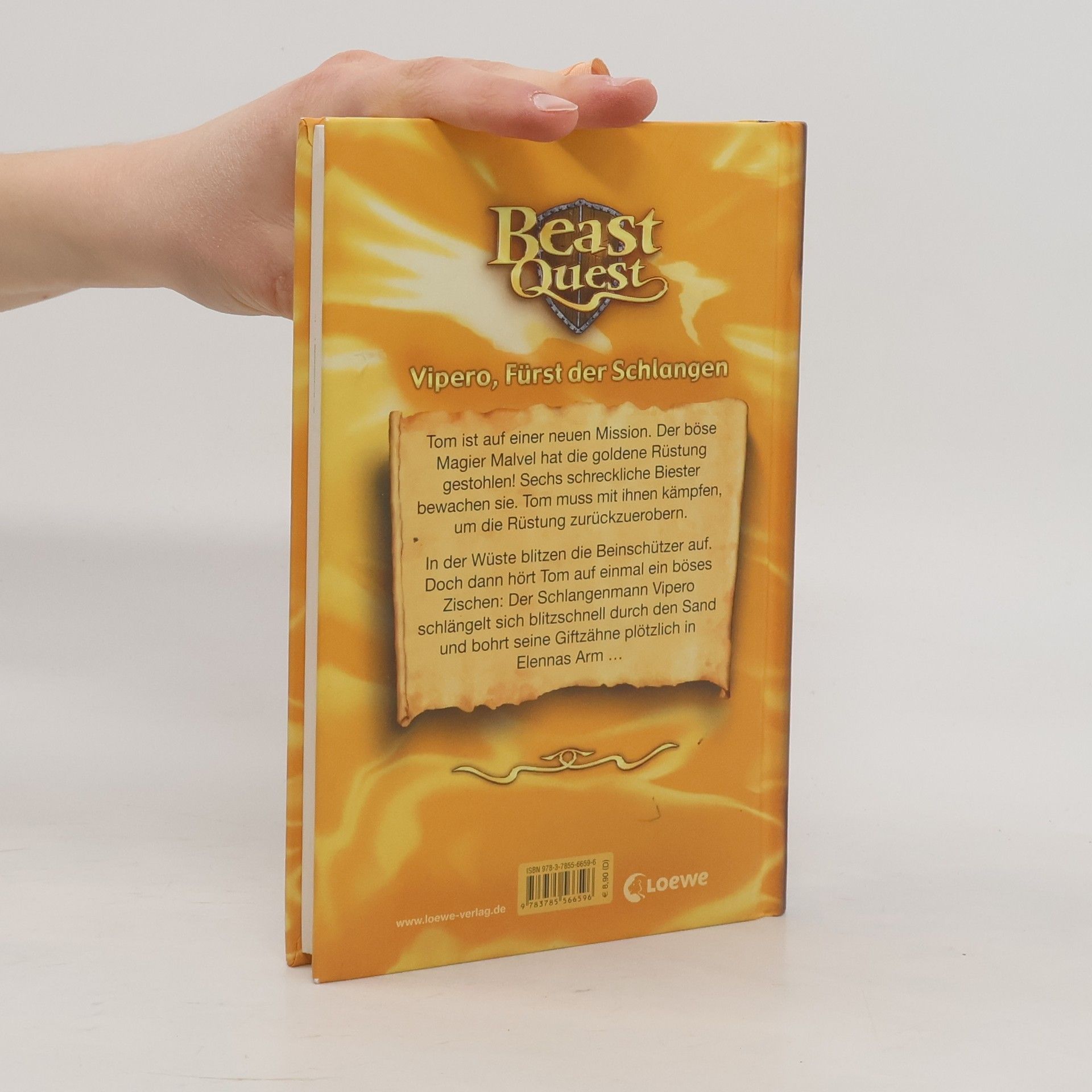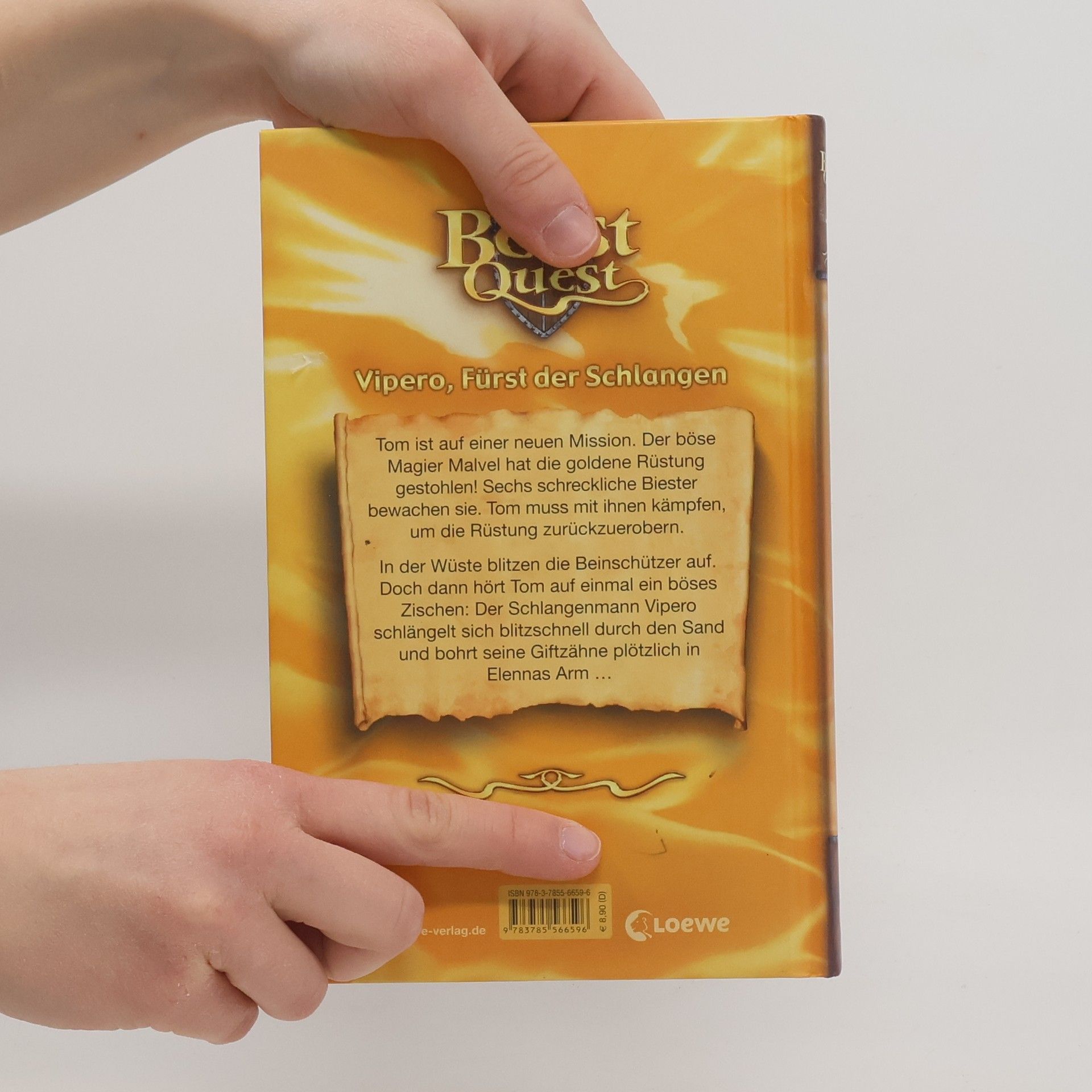 Das Buch ist bei deiner Buchhandlung vor Ort und bei vielen Online-Buchshops erhältlich! Tom ist auf einer neuen Mission. Der böse Magier Malvel hat die goldene Rüstung gestohlen! Sechs schreckliche Biester bewachen sie. Tom muss mit ihnen kämpfen, um die Rüstung zurückzuerobern. In der Wüste blitzen die Beinschützer auf. Doch dann hört Tom auf einmal ein böses Zischen: Der Schlangenmann Vipero schlängelt sich blitzschnell durch den Sand und bohrt seine Giftzähne plötzlich in Elennas Arm … Actionreiche Fantasy, spannende Missionen und gefährliche Biester! Die erfolgreiche Kinderbuchreihe mit zahlreichen Illustrationen ist besonders für Jungs ab 8 Jahren geeignet.