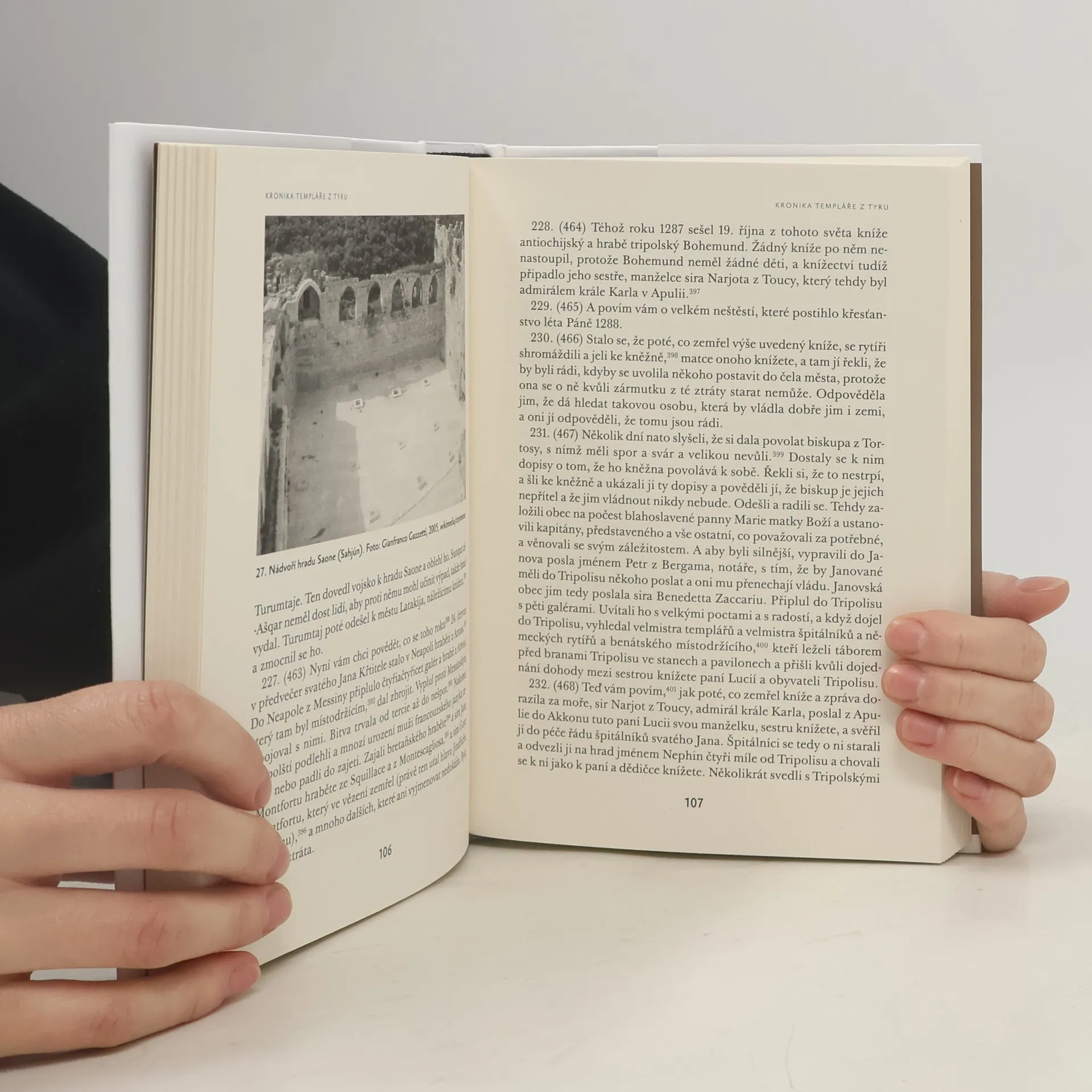 Třetí a nejdelší část významné kroniky ze 14. století známé jako Gestes des Chiprois (Činy Kypřanů) pojednává o dějinách východního Středomoří od 30. let 12. století až do počátku 14. století. Jejím autorem je anonymní kyperský rytíř tradičně zvaný Templář z Tyru, který se pohyboval v blízkosti templářského mistra Viléma z Beaujeu, jemuž sloužil coby překladatel z arabštiny. Kronika líčí významné události v období od počátku 30. let 12. století až do roku 1309 na Východě, respektive 1314 na Západě. Autor často čerpá ze svých osobních zkušeností a věnuje se zejména posledním dnům pevninských křižáckých států, včetně pádu Akkonu v roce 1291 (jeho spis je jediným pramenem, v němž se zachovala očitá svědectví této katastrofy), a podává informace také o období po roce 1291. Dále zmiňuje různé události na Západě, včetně válek Štaufů v Itálii, vzestupu a pádu Šimona z Montfortu v Anglii či nekonečných válek Janova a Benátek ve Středomoří. V neposlední řadě se autor zabývá i procesem s templáři ve Francii, který vyústil ve zrušení tohoto mocného řádu. Vydání knihy podpořilo Ministerstvo kultury České republiky.