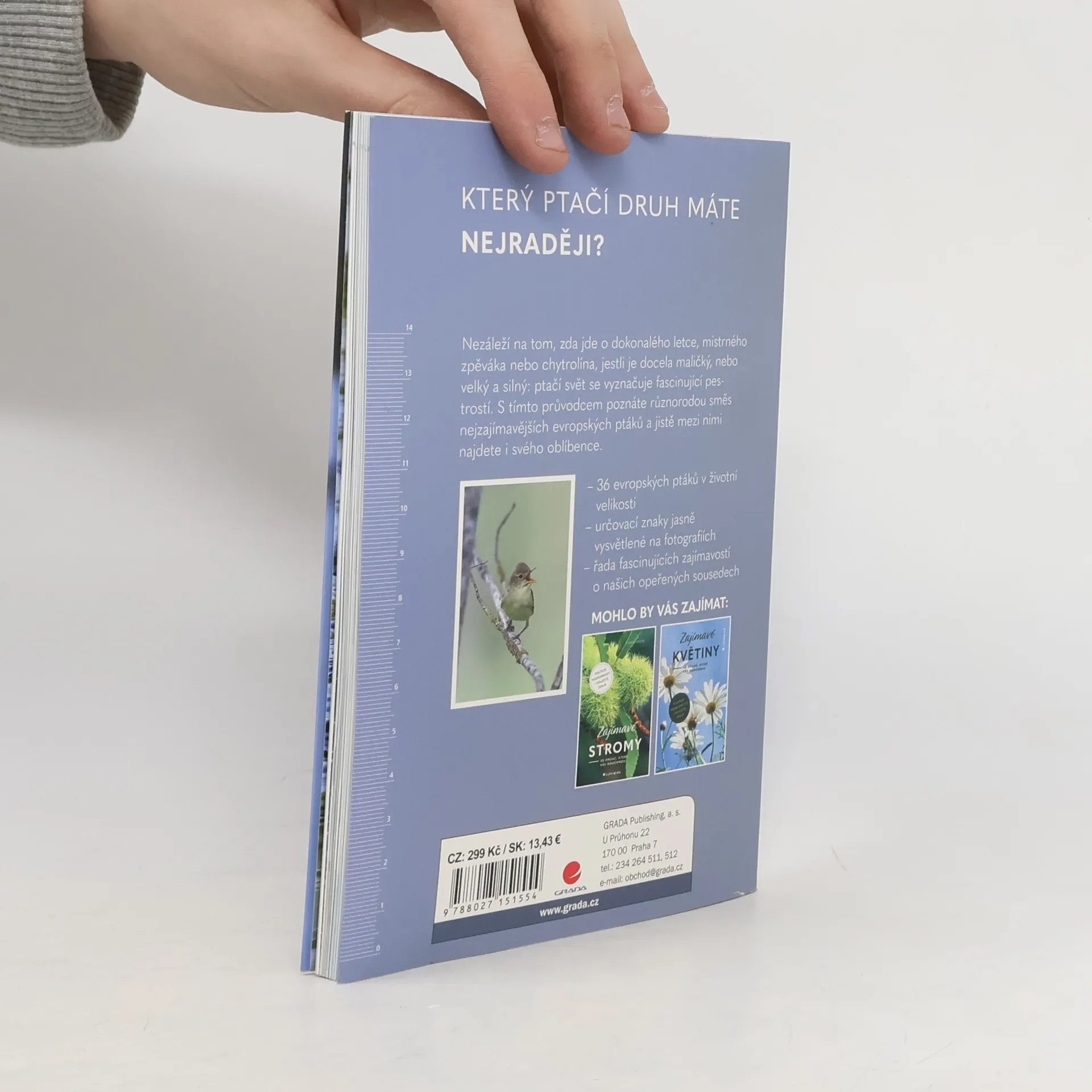 Ptáci v České republice se vyznačují pestrou rozmanitostí. Od roku 1800 bylo na našem území alespoň jednou pozorováno 403 druhů, z nichž 193 je v současnosti považováno za pravidelně či alespoň místně a v malých počtech hnízdící. Žijí u nás buď celoročně nebo zde tráví jaro a léto, aby se postarali o potomstvo. Autorka vybrala36 pozoruhodných druhů a rozdělila je do skupin - dokonalí letci, mistrní zpěváci, ranní ptáčata, krasavci, chytrolíni, specialisté, opředeni pověrami, mrňouskové a siláci. Zjistíte mnoho zajímavého o rehcích, července, brkoslavovi, ledňáčkovi, rorýsovi, králíčkovi a mnoha dalších. Máte také svého oblíbence?