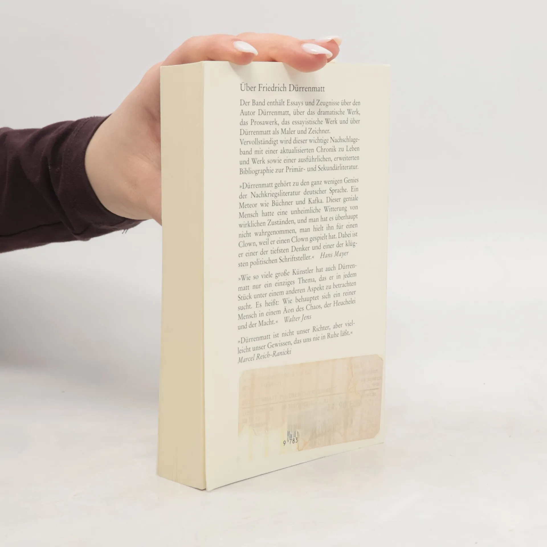 Der Band enthält Essays und Zeugnisse über den Autor Dürrenmatt, das dramatische Werk, das Prosawerk, über Dürrenmatt als Maler und Zeichner. Vervollständigt wird dieser wichtige Nachschlageband mit einer Chronik zu Leben und Schaffen und einer ausführlichen Bibliographie.