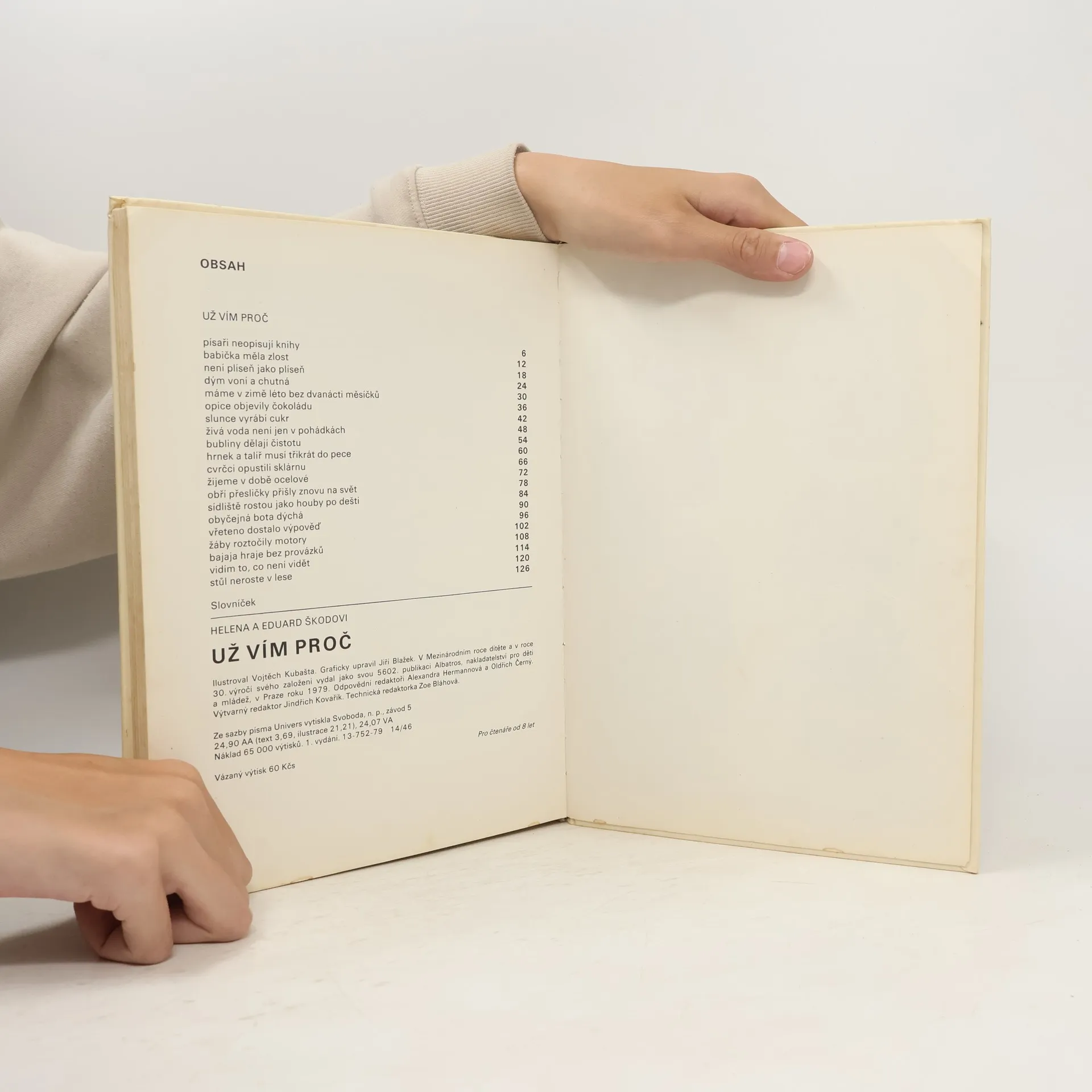 Z této knížky se dozvíte nejen o historii, vzniku a výrobě sýrů, chleba, uzenin, mrazených výrobků, ale také o látce na šaty, mýdle, skle a porcelánu, zrodu knih a knihovniček, pochopíte leccos z tajů elektřiny a televizního přenosu a jiných, nejméně zajímavých věcí.