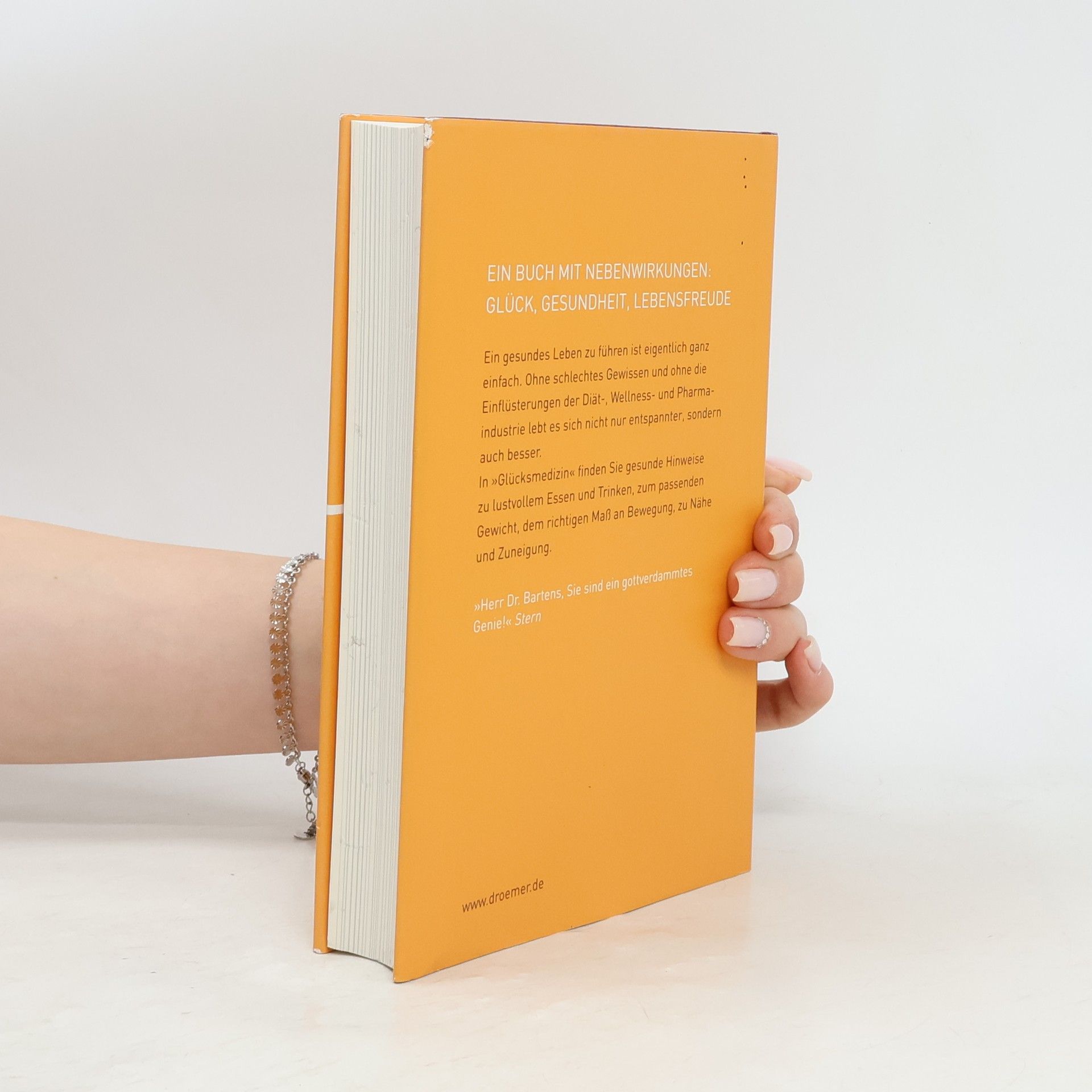 EIN BUCH MIT NEBENWIRKUNGEN: GLÜCK, GESUNDHEIT, LEBENSFREUDE Ein gesundes Leben zu führen ist eigentlich ganz einfach. Ohne schlechtes Gewissen und ohne die Einflüsterungen der Diät-, Wellness- und Pharmaindustrie lebt es sich nicht nur entspannter, sondern auch besser. In 'Glücksmedizin' finden Sie gesunde Hinweise zu lustvollem Essen und Trinken, zum passenden Gewicht, dem richtigen Maß an Bewegung, zu Nähe und Zuneigung. 'Herr Dr. Bartens, Sie sind ein gottverdammtes Genie!' Stern