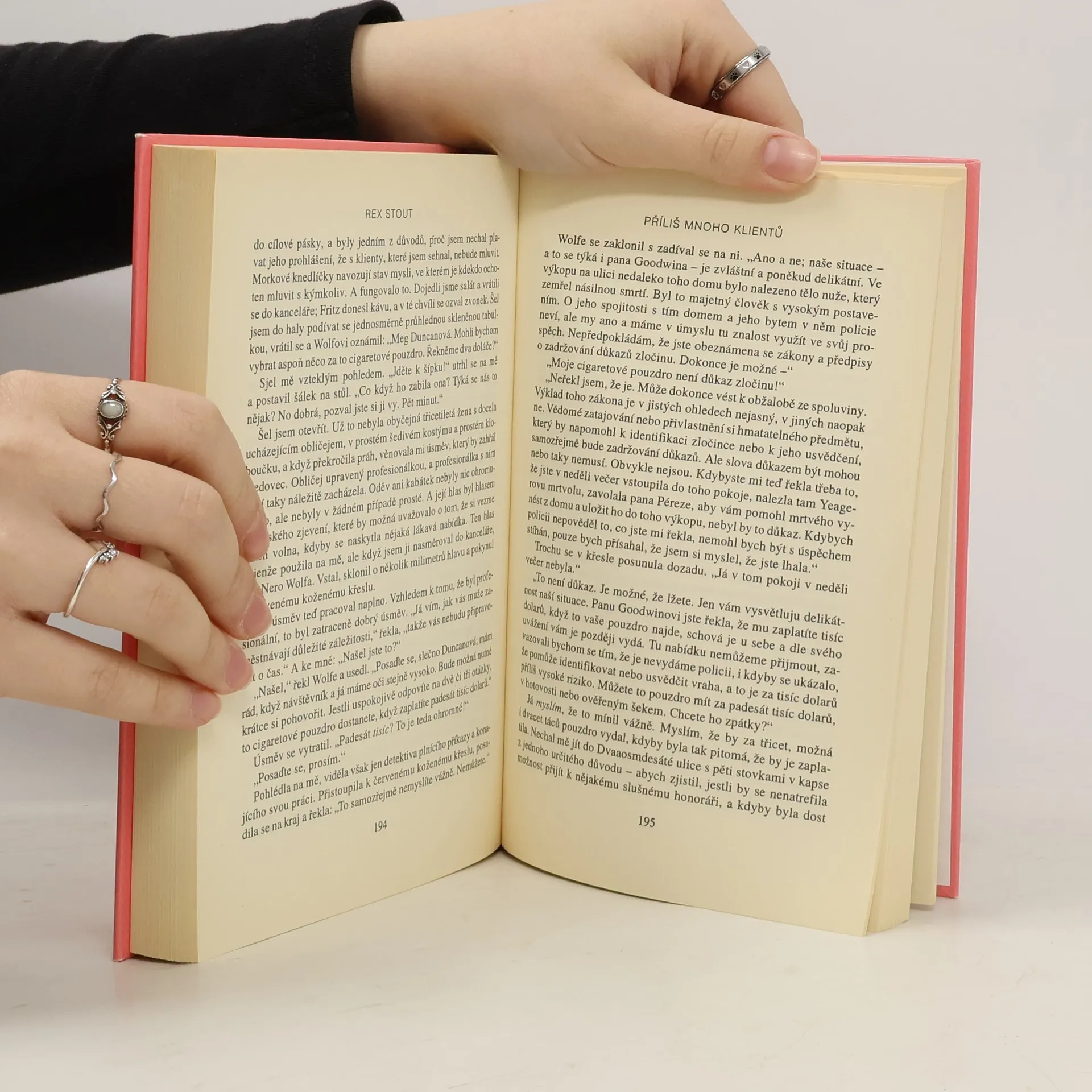 Kniha obsahuje dva detektivní romány známého amerického autora, které se odehrávají v padesátých letech. Hlavními postavami obou románů jsou tlustý a geniální Nero Wolfe a jeho asistent Archie Goodwin. V prvním příběhu řeší tajuplný únos a následné dvě vraždy a k řešení Wolfe dochází pouhou dedukcí. V druhém příběhu se kolem jedné vraždy objeví více klientů a jeden z nich dokonce falešný. Dobrá četba, autor si udržuje svůj vysoký standard a smysl nejen pro dobrou zápletku a pointu, ale i osobitý humor.