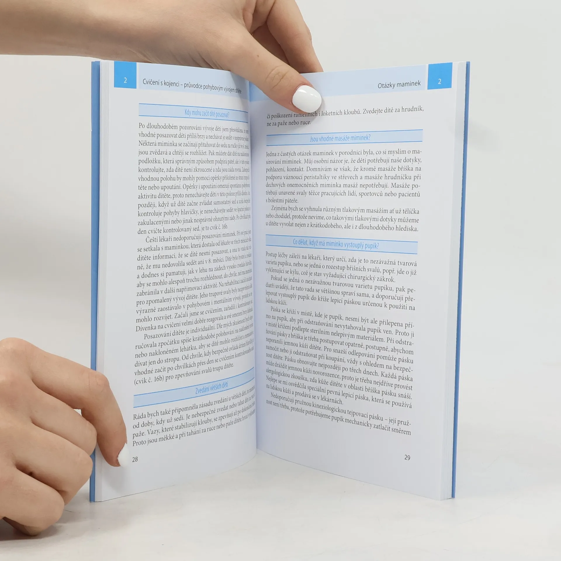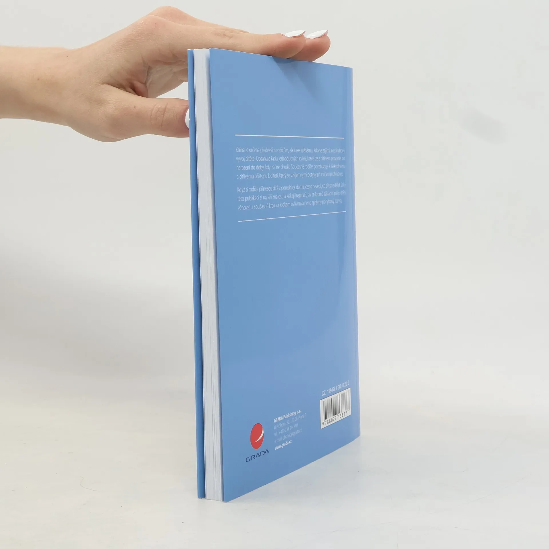 Kniha napsaná zkušenou fyzioterapeutkou přináší inspiraci, jak se rodiče mohou dítěti kromě základní péče věnovat a tím krok za krokem ovlivňovat jeho správný pohybový vývoj.Obsahuje řadu jednoduchých cviků, které lze s dítětem provádět od narození do doby, kdy začne chodit. Najdete v ní také krátká zamyšlení například o používání autosedaček, důležitosti vzájemných dotyků nebo obutí nejmenších.