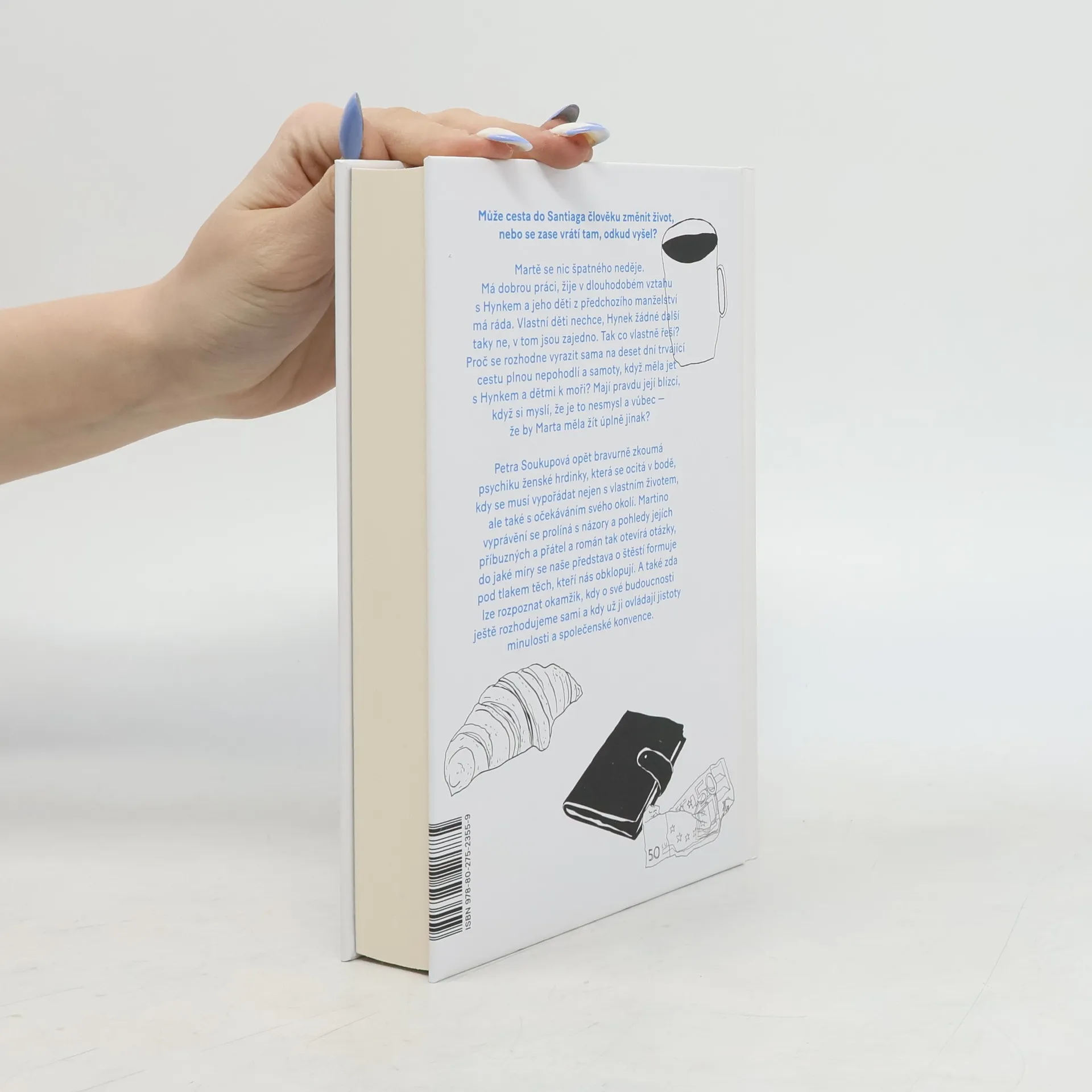 Může cesta do Santiaga změnit člověku život nebo se zase vrátí tam, odkud vyšel? Martě se nic špatného neděje. Má dobrou práci, žije v dlouhodobém vztahu s Hynkem a jeho děti z předchozího manželství má ráda. Svoje děti nechce, Hynek žádné další taky ne, v tom jsou zajedno. Tak co chce vlastně řešit? Proč se rozhodne vyrazitsama na deset dní trvající cestu plnou nepohodlí a samoty, když měla jet s Hynkem a dětmi k moři? Mají pravdu její blízcí, když si myslí, že je to nesmysl a vůbec — že by Marta měla žít úplně jinak? Petra Soukupová opět bravurně zkoumá psychiku ženské hrdinky, která se ocitá v bodě, kdy se musí vypořádat nejen s vlastním životem, ale také s očekáváními svého okolí. Martino vyprávění se prolíná s názory a pohledy jejích blízkých a román tak otevírá otázky, do jaké míry se naše představa o štěstí formuje pod tlakem těch, kteří nás obklopují. A také zda lze rozpoznat okamžik, kdy o své budoucnosti ještě rozhodujeme sami a kdy už ji ovládají jistoty minulosti a společenské konvence.