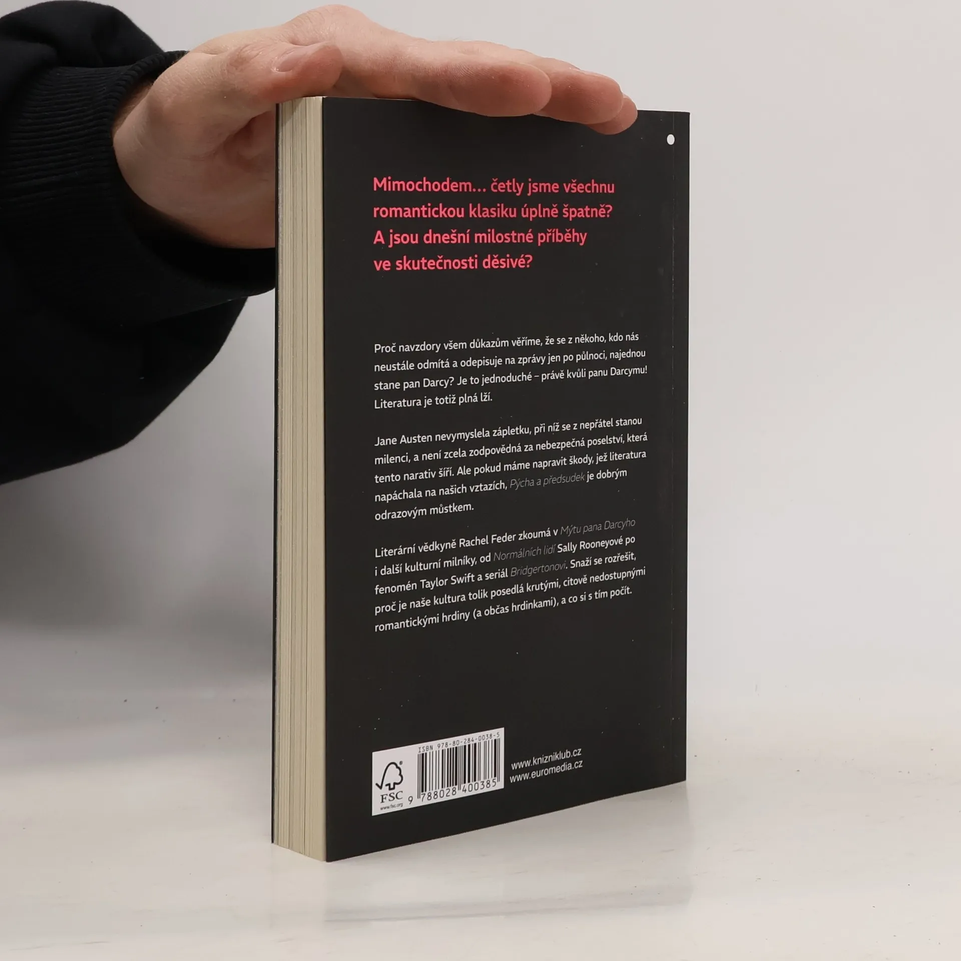 Proč pořád věříme, že se z někoho, kdo nás odmítá a odepisuje na zprávy jen po půlnoci, vyklube okouzlující pan Darcy? Je to jednoduché – právě kvůli panu Darcymu! Neomalenému romantickému hrdinovi Pýchy a předsudku, který naši vtipnou, bystrou hrdinku zpočátku uráží a ignoruje, ale nakonec podlehne jejím půvabům. Jenže literatura nám lže. Rachel Feder v této knize zkoumá rozmanité kulturní milníky: od života lorda Byrona přes Normální lidi Sally Rooney až po fenomén Taylor Swift a seriál Bridgertonovi. Snaží se rozřešit, proč je naše kultura posedlá krutými, citově nedostupnými romantickými hrdiny (a hrdinkami) a co si s tím počít.
