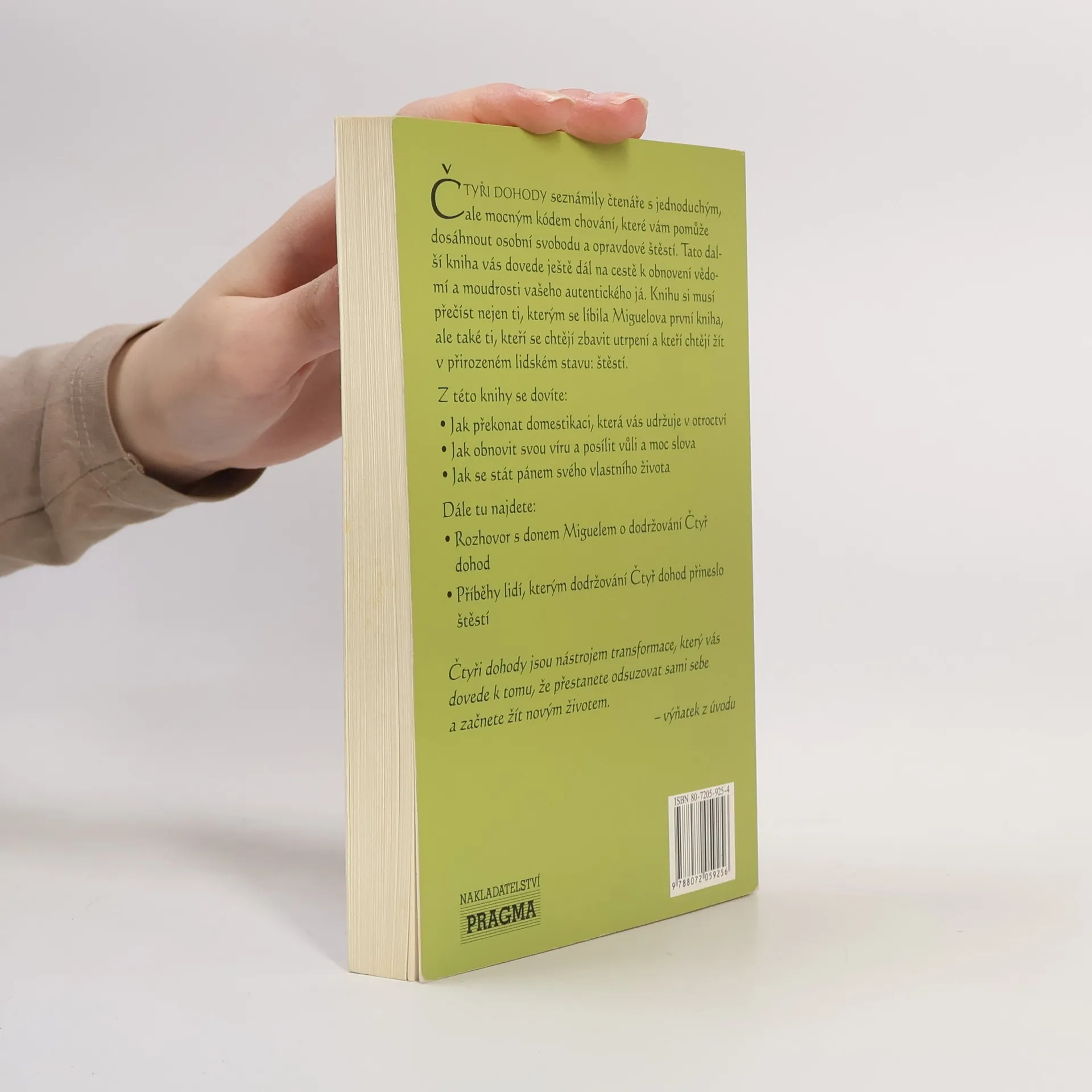 Čtyři dohody seznámily čtenáře s jednoduchým, ale mocným kódem chování, které vám pomůže dosáhnout osobní svobodu a opravdové štěstí. Tato další kniha vás dovede ještě dál na cestě k obnovení vědomí a moudrosti vašeho autentického já. Knihu si musí přečíst nejen ti, kterým se líbila Miguelova první kniha, ale také ti, kteří se chtějí zbavit utrpení a kteří chtějí žít v přirozeném lidském stavu: štěstí.