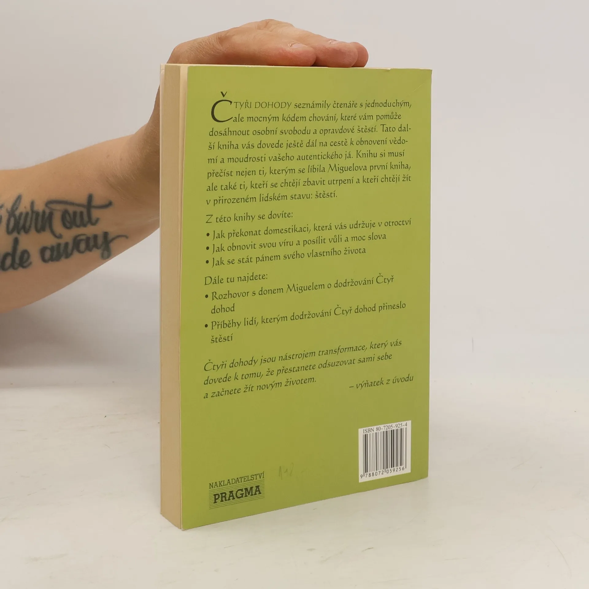 Čtyři dohody seznámily čtenáře s jednoduchým, ale mocným kódem chování, které vám pomůže dosáhnout osobní svobodu a opravdové štěstí. Tato další kniha vás dovede ještě dál na cestě k obnovení vědomí a moudrosti vašeho autentického já. Knihu si musí přečíst nejen ti, kterým se líbila Miguelova první kniha, ale také ti, kteří se chtějí zbavit utrpení a kteří chtějí žít v přirozeném lidském stavu: štěstí.