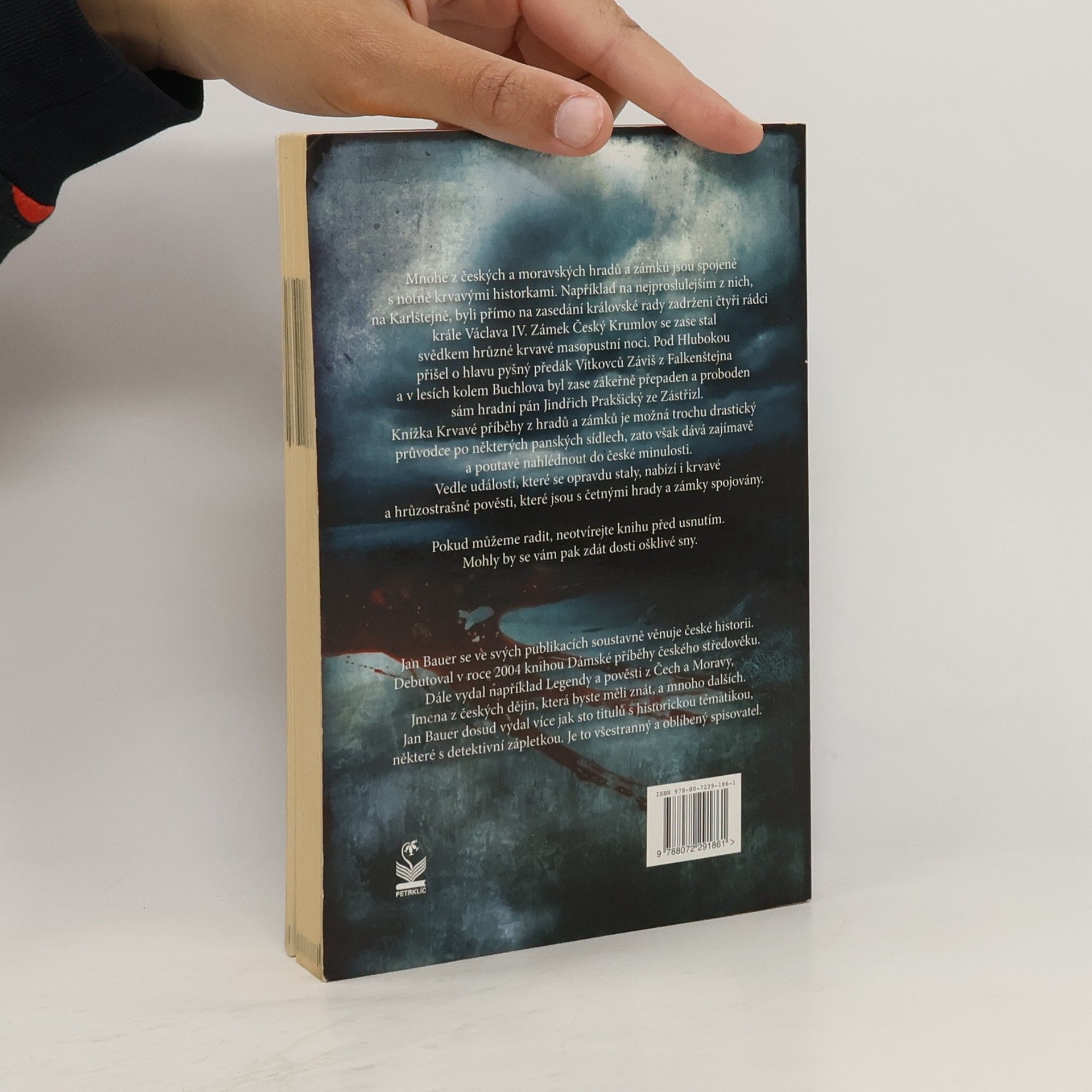 Mnohé z českých a moravských hradů a zámků jsou spojeny s notně krvavými historiemi. Například na snad neproslulejším z nich, na Karlštejně, byli přímo na zasedání královské rady zavražděni čtyři rádci krále Václava IV. Zámek Český Krumlov se zase stal svědkem hrůzně krvavé masopustní noci. Pod Hlubokou přišel o hlavu pyšný předák Vítkovců Záviš z Falkenštejna a v lesích kolem Buchlova byl zase zákeřně přepaden a pobodán sám hradní pán Jindřich Prakšický ze Zástřizl. Knížka Krvavé příběhy z hradů a zámků je možná trochu drastickým průvodcem po někdejších panských sídlech, za to však dává zajímavě a poutavě nahlédnout do české minulosti. Vedle událostí, které se opravdu staly, nabízí i krvavé a hrůzostrašné pověsti, které jsou s četnými hrady a zámky spojovány. Pokud můžeme radit, neotvírejte knihu před usnutím. Mohly by se vám pak zdát dosti ošklivé sny.