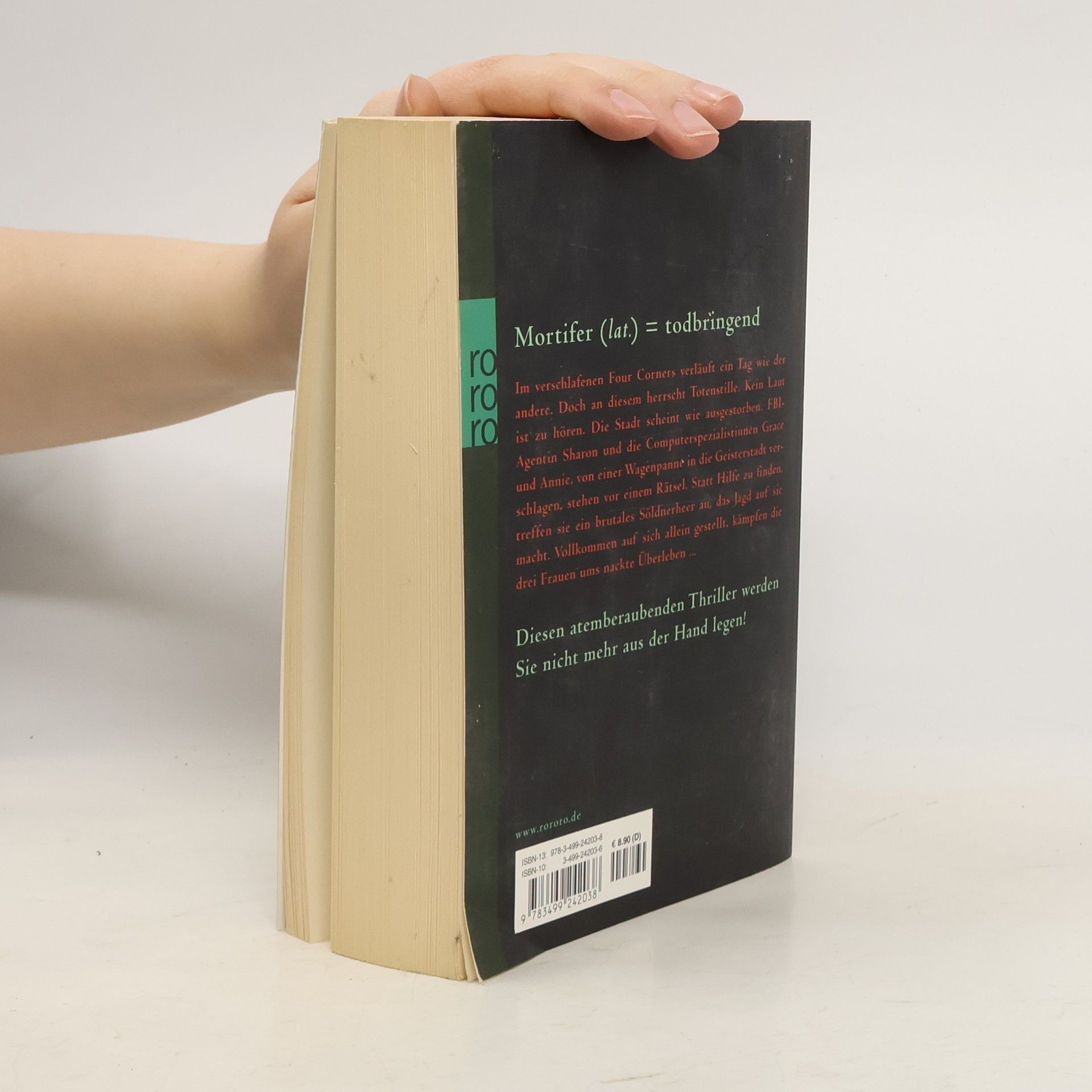 Mortifer (lat.) = todbringendIm verschlafenen Four Corners verläuft ein Tag wie der andere. Doch an diesem herrscht Totenstille. Kein Laut ist zu hören. Die Stadt scheint wie ausgestorben. FBI-Agentin Sharon und die Computerspezialistinnen Grace und Annie, von einer Wagenpanne in die Geisterstadt verschlagen, stehen vor einem Rätsel. Statt Hilfe zu finden, treffen sie ein brutales Söldnerheer an, das Jagd auf sie macht. Vollkommen auf sich allein gestellt, kämpfen die drei Frauen ums nackte Überleben …Diesen atemberaubenden Thriller werden Sie nicht mehr aus der Hand legen!