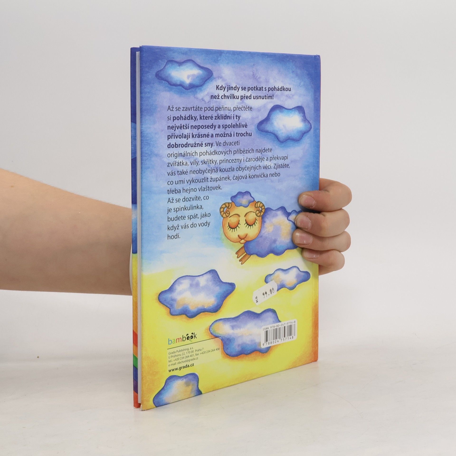Komu by se chtělo do postýlky, když svět je plný zajímavých věcí a zážitků? Spát se ale musí a usínání může být také báječné dobrodružství. Kdy jindy se potkat s pohádkou než chvilku před usnutím? Než se zavrtáte pod peřinu, přečtěte si zbrusu nové pohádky, které zklidní i ty největší neposedy a spolehlivě přivolají krásné a možná i trochu dobrodružné sny. Ve dvaceti originálních pohádkových příbězích najdete zvířátka, víly, skřítky, princezny i čaroděje a překvapí vás také neobyčejná kouzla obyčejných věcí. Zjistěte, co umí vykouzlit župánek, čajová konvička nebo třeba hejno vlaštovek. Až se dozvíte, co je spinkulinka, budete spát, jako když vás do vody hodí. Další z řady moderních pohádek oblíbené autorky Zuzany Pospíšilové tentokrát provázejí půvabné ilustrace Veroniky Kubáčové.