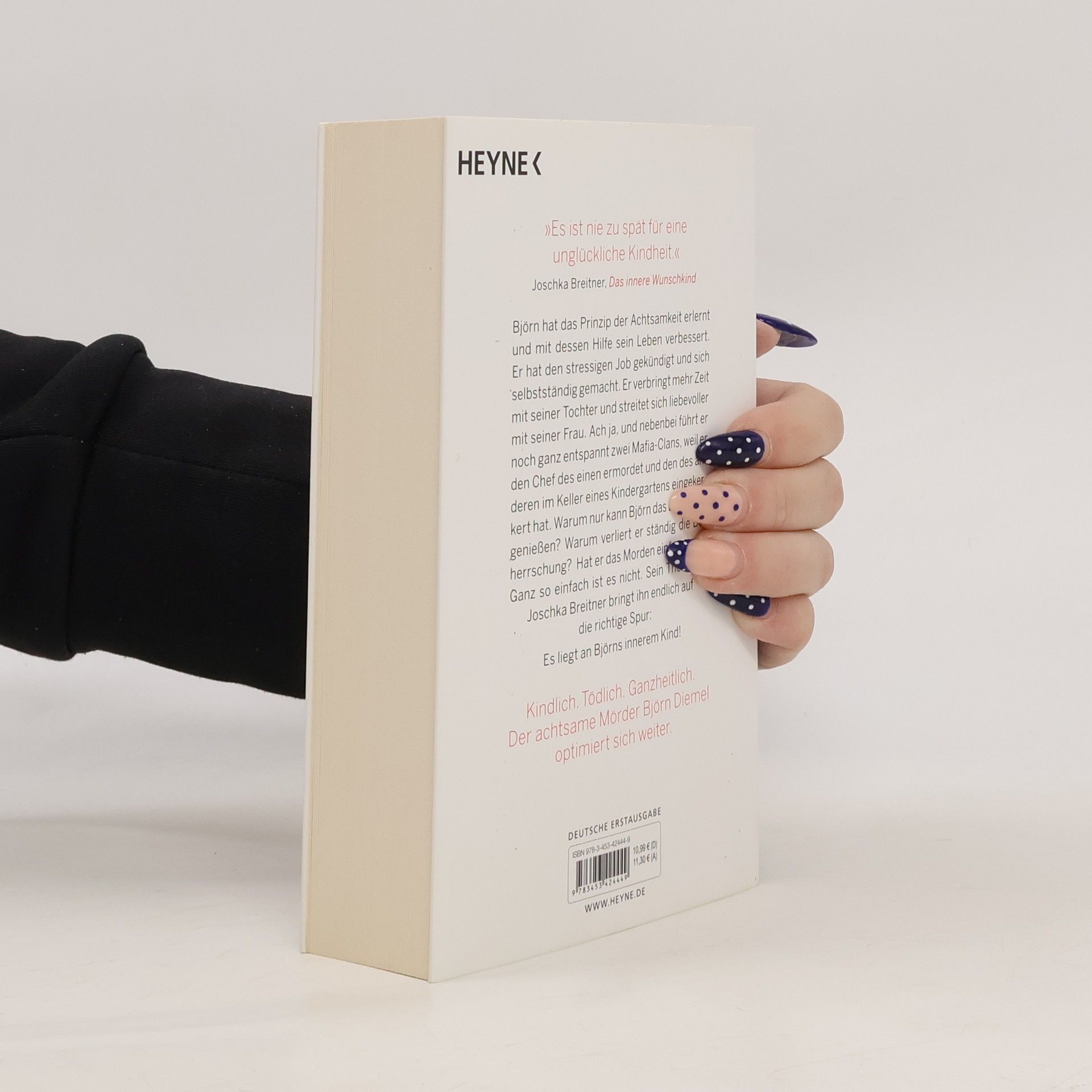 Björn Diemel ist zurück – und mordet ganzheitlicher als je zuvor Björn Diemel hat die Prinzipien der Achtsamkeit erlernt, und mit ihrer Hilfe sein Leben verbessert. Er hat den stressigen Job gekündigt und sich selbstständig gemacht. Er verbringt mehr Zeit mit seiner Tochter und streitet sich in der Regel liebevoller mit seiner Frau. Ach ja, und nebenbei führt er noch ganz entspannt zwei Mafia-Clans, weil er den Chef des einen ermordet und den des anderen im Keller eines Kindergartens eingekerkert hat. Warum nur kann Björn das alles nicht genießen? Warum verliert er ständig die Beherrschung? Hat er das Morden einfach satt? Ganz so einfach ist es nicht. Sein Therapeut Joschka Breitner bringt ihn endlich auf die richtige Spur: Es liegt an Björns innerem Kind!